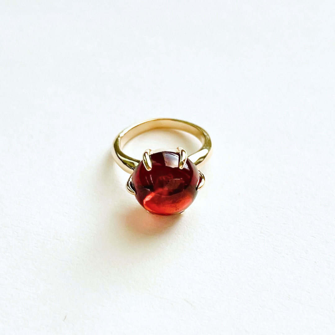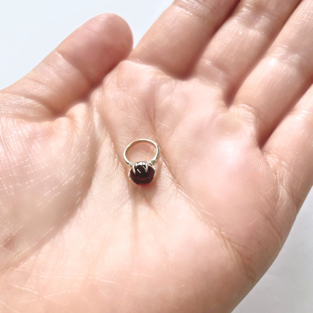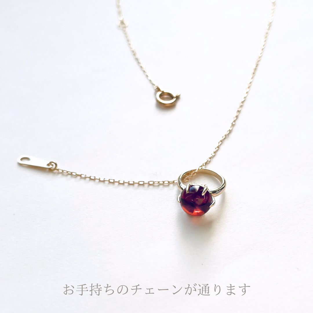 存在感のあるガーネットのカボッションをセットした可愛いベビーリングのペンダントトップです。