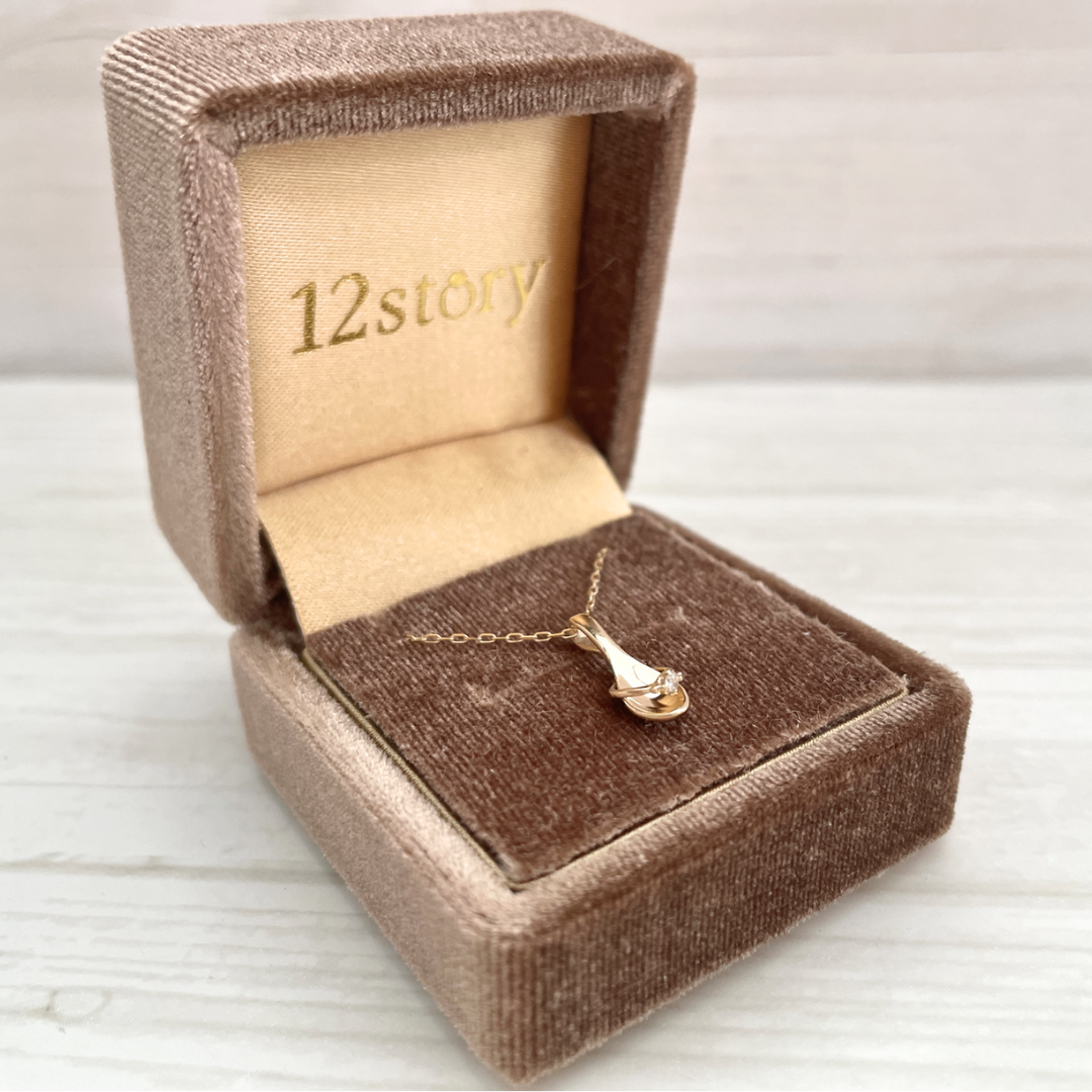 K10イエローゴールドの可愛いベビースプーンにダイヤモンドをセッティングしたベビーリングを組み合わせた12storyオリジナルデザインのネックレスは、身に着けるお守りとして大人になってからも着用できるカジュアルさも魅力です。