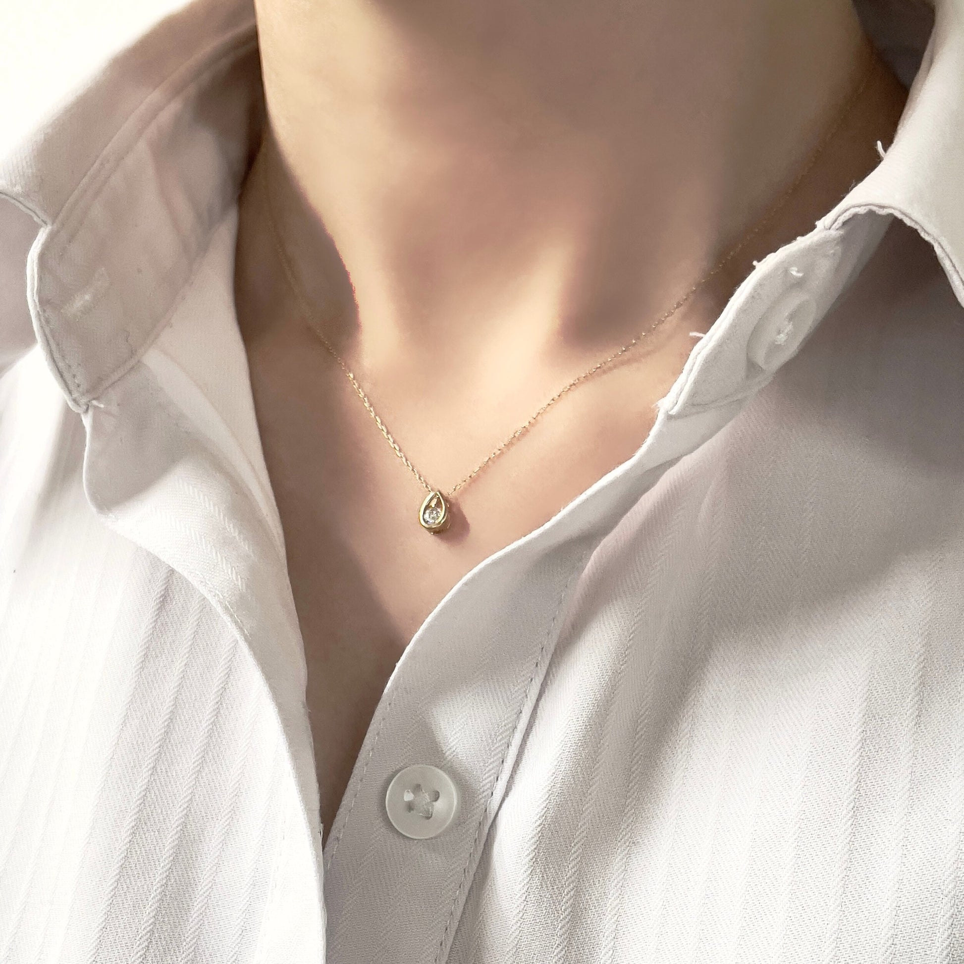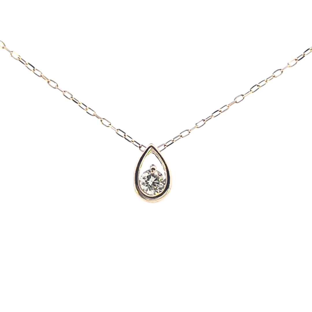 雫のフレームにセットした1粒のダイヤモンドが上品な印象のネックレスです。