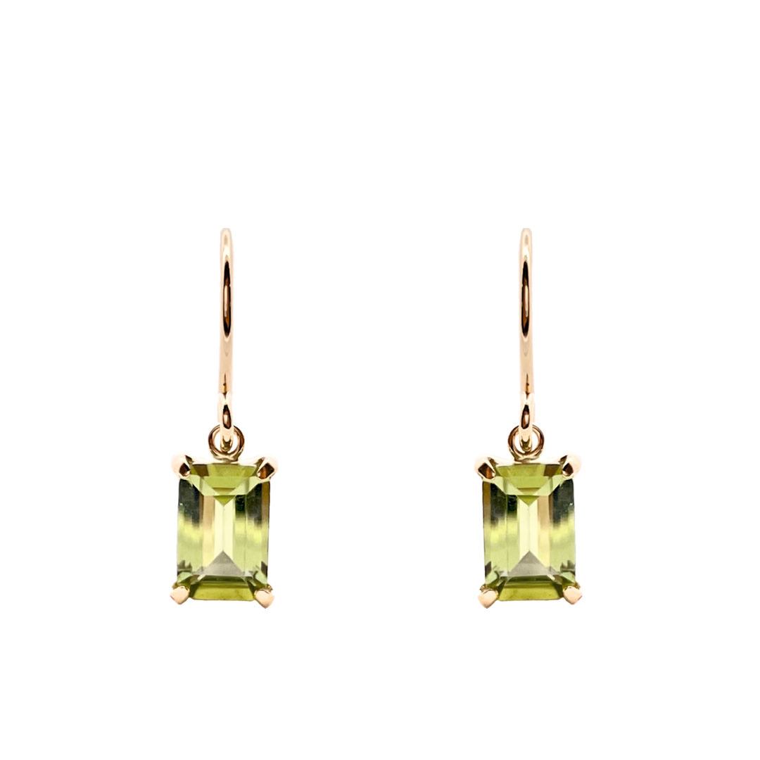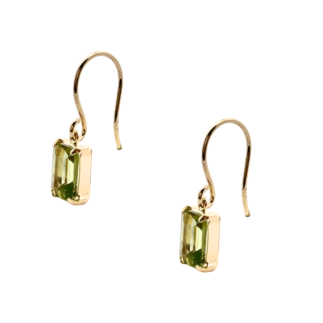 ペリドット スクエアカット フックピアス K10YG