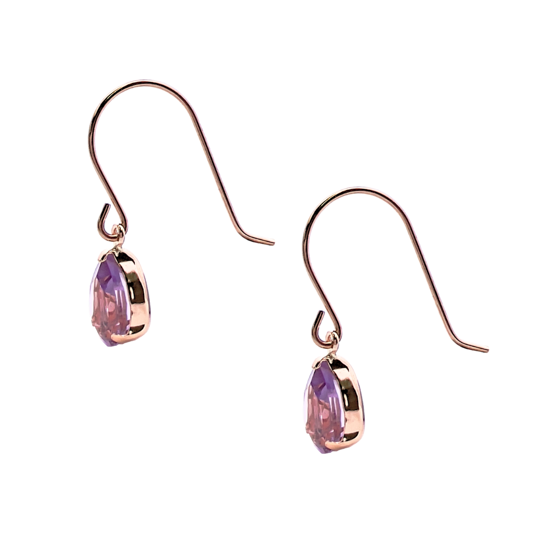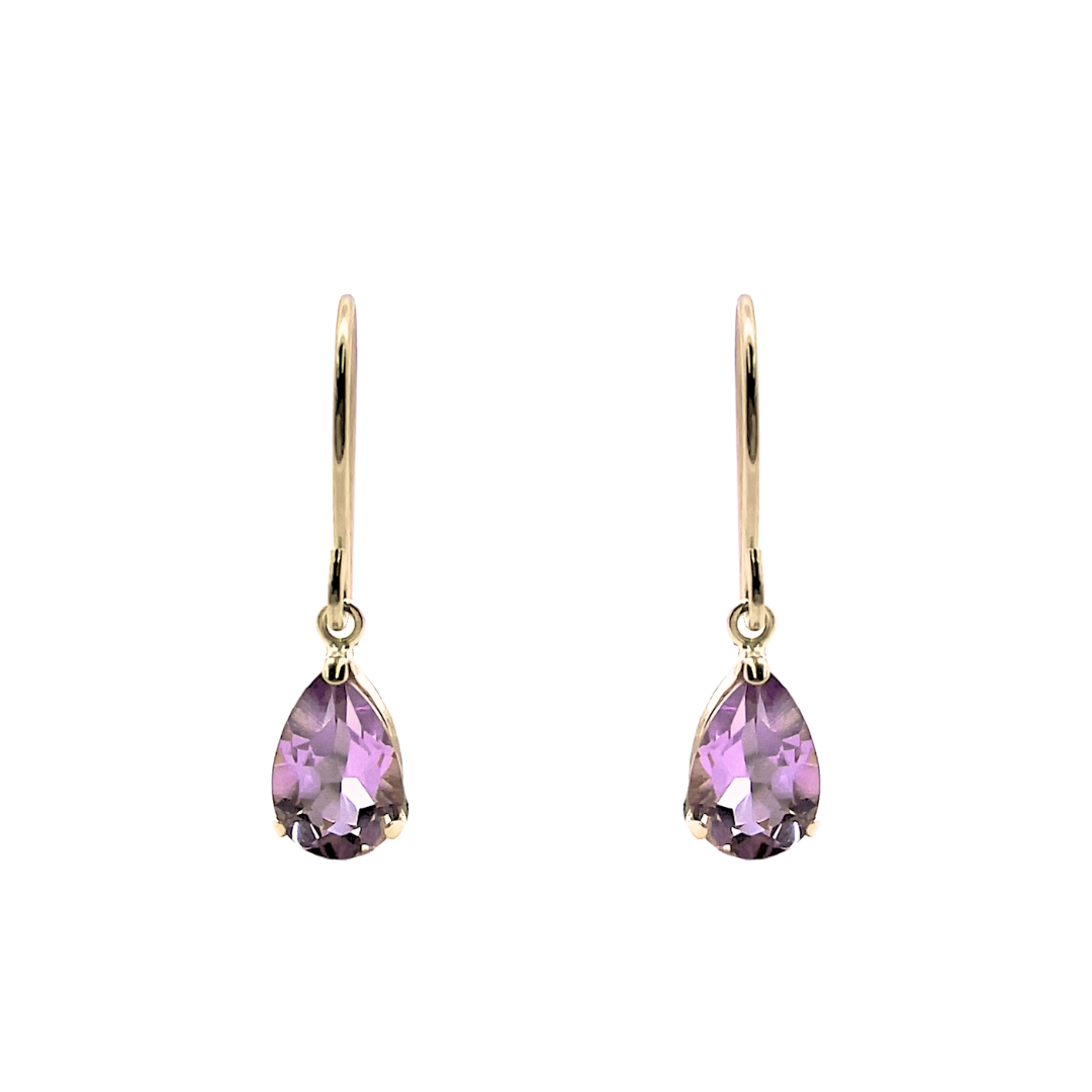 2月の誕生石として世界中で人気の高いアメジストを雫のようなペアシェイプのカットで揺れるピアスに仕立てました。