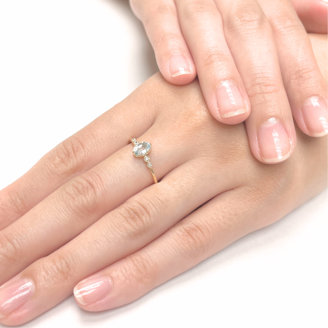 センターにオーバルカットが美しい3月の誕生石アクアマリンを