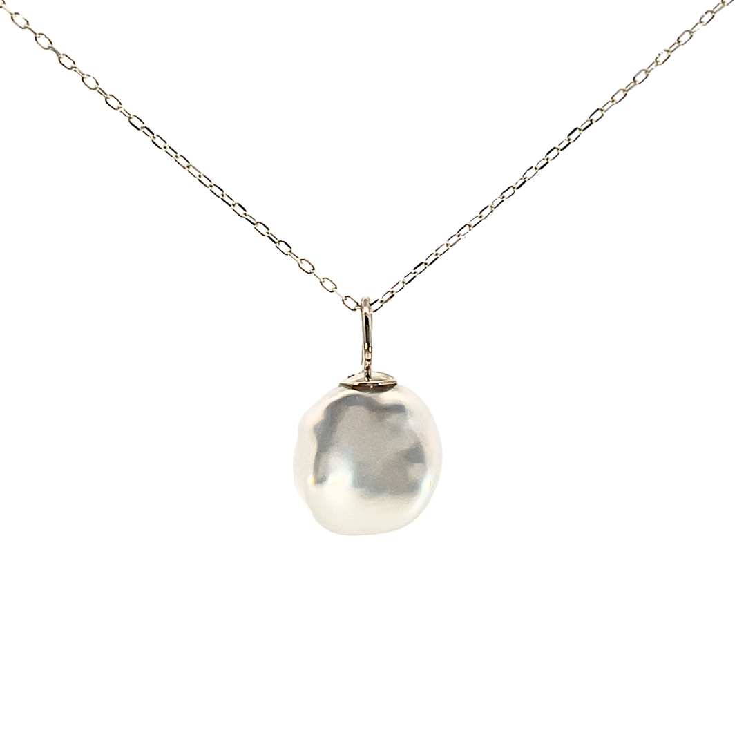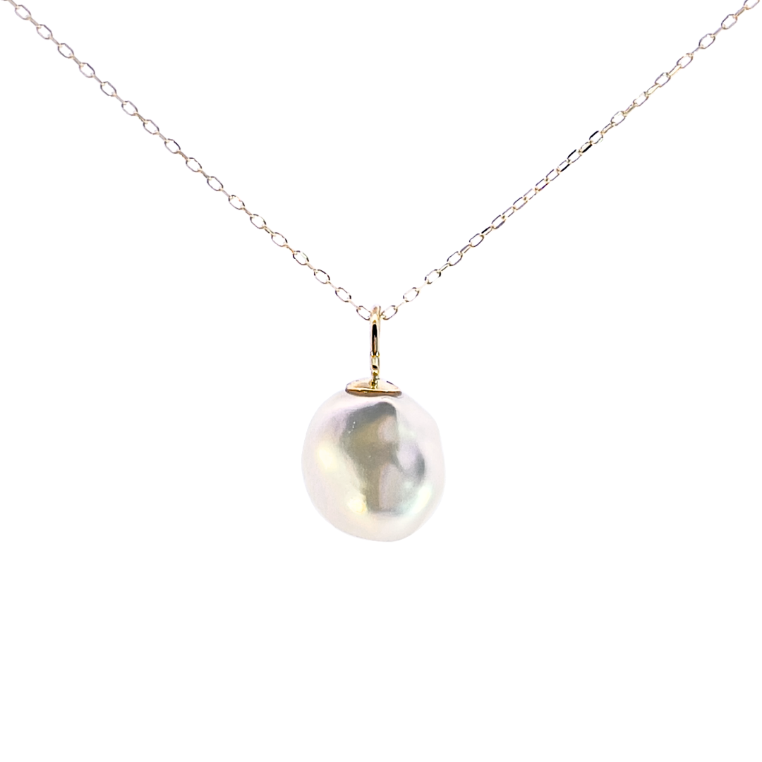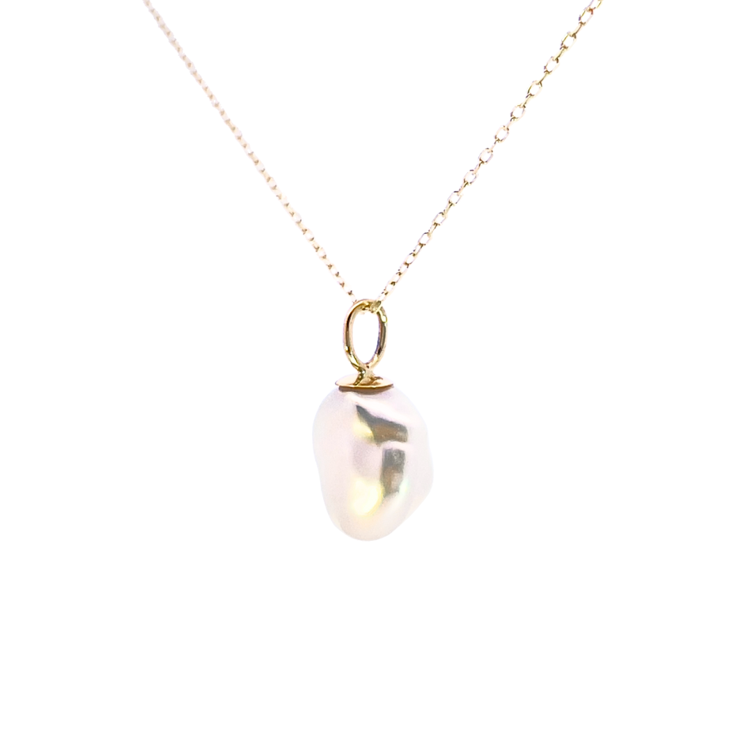 美しいテリを持って生まれたバロックパールをK10イエローゴールのチェーンを付けてシンプルなネックレスに仕立てました。