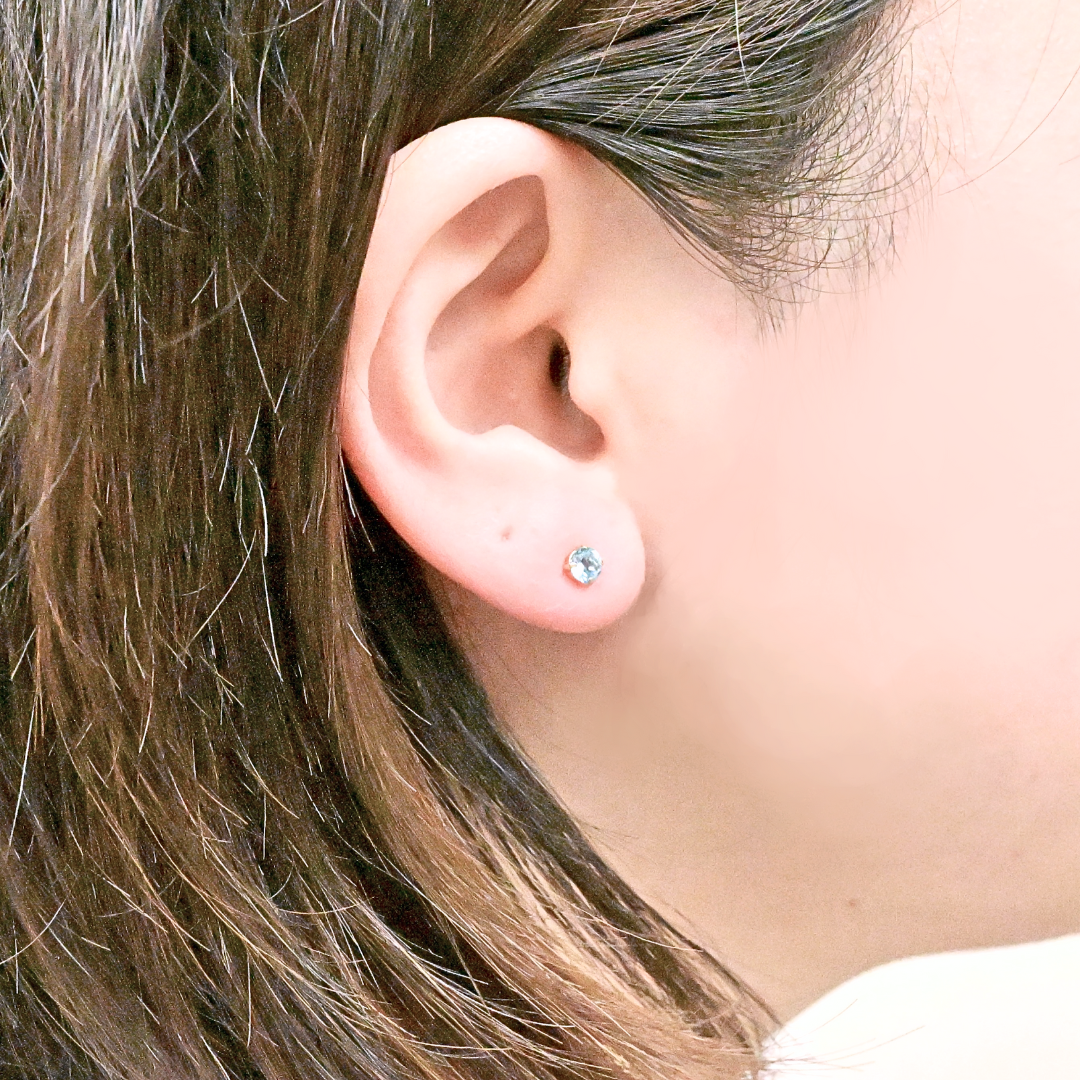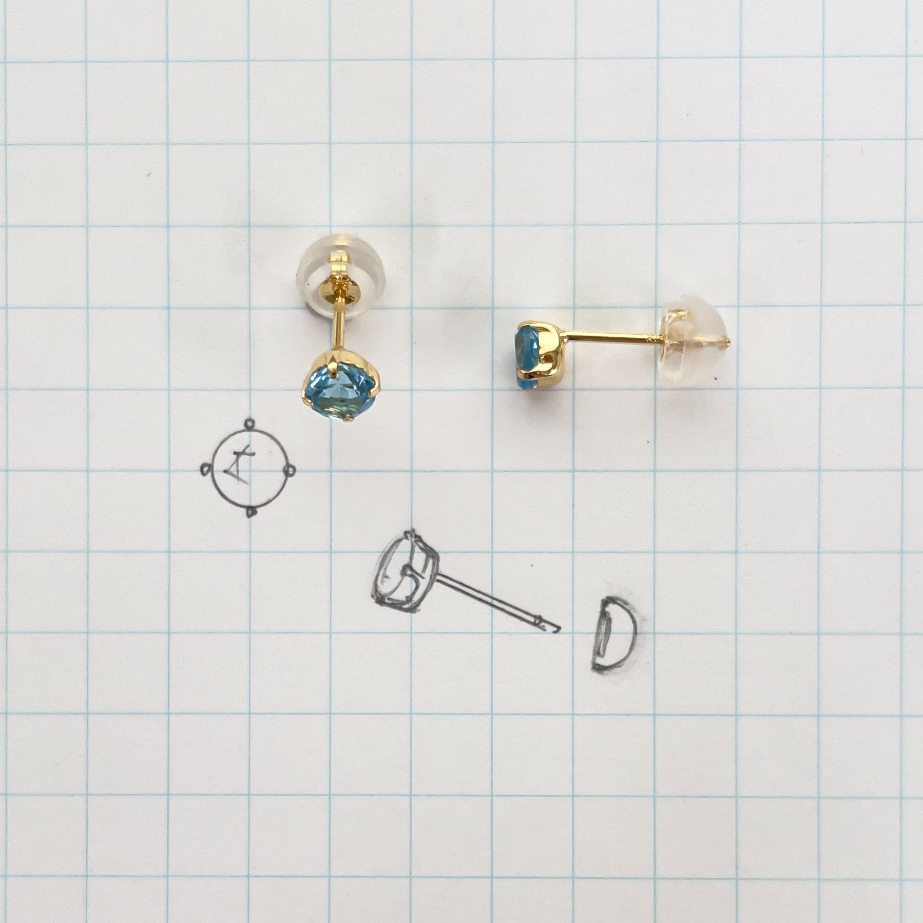 ブルートパーズ ラウンドカット スタッドピアス K18YG