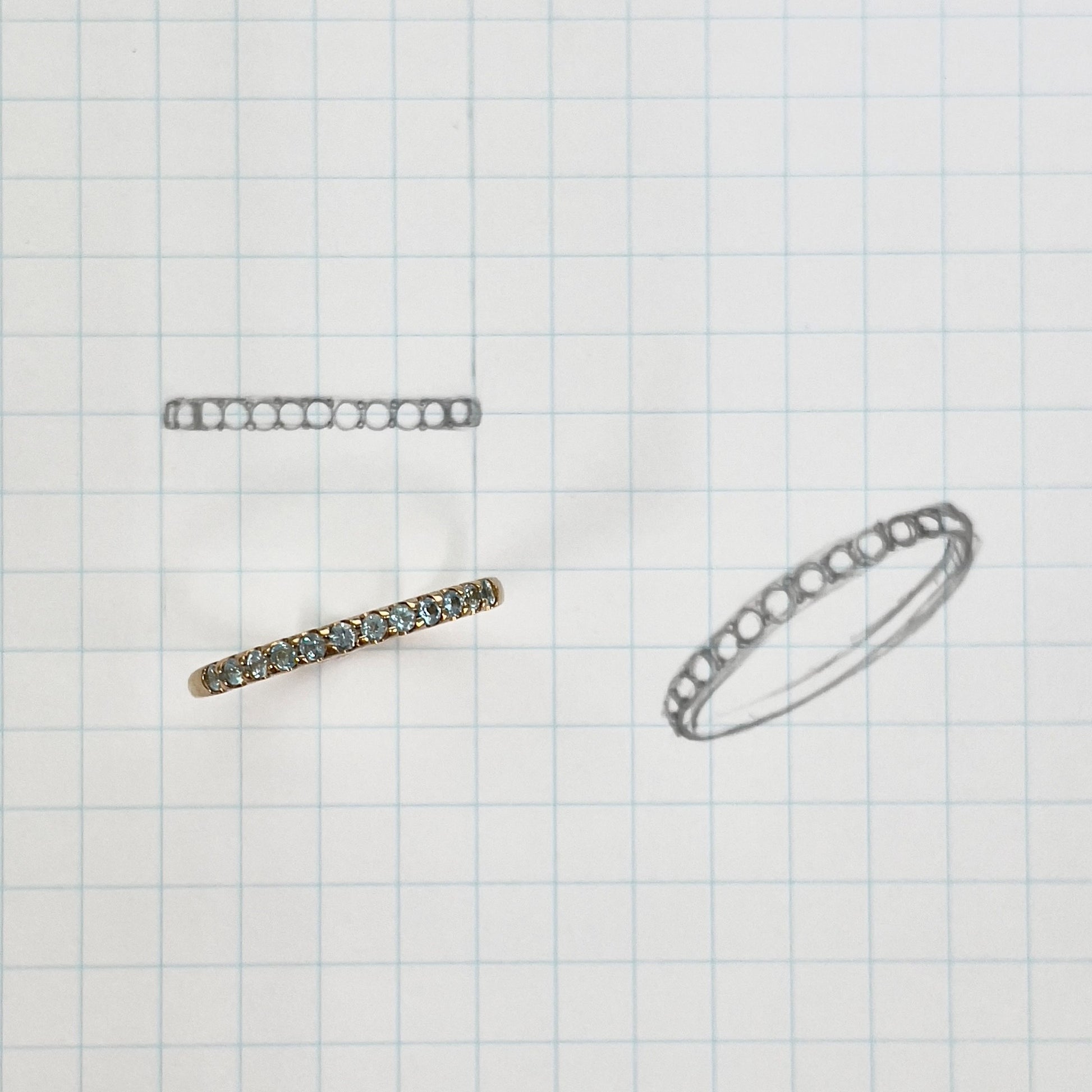 1粒1粒の11月の誕生石ブルートパーズを並べたエタニティは