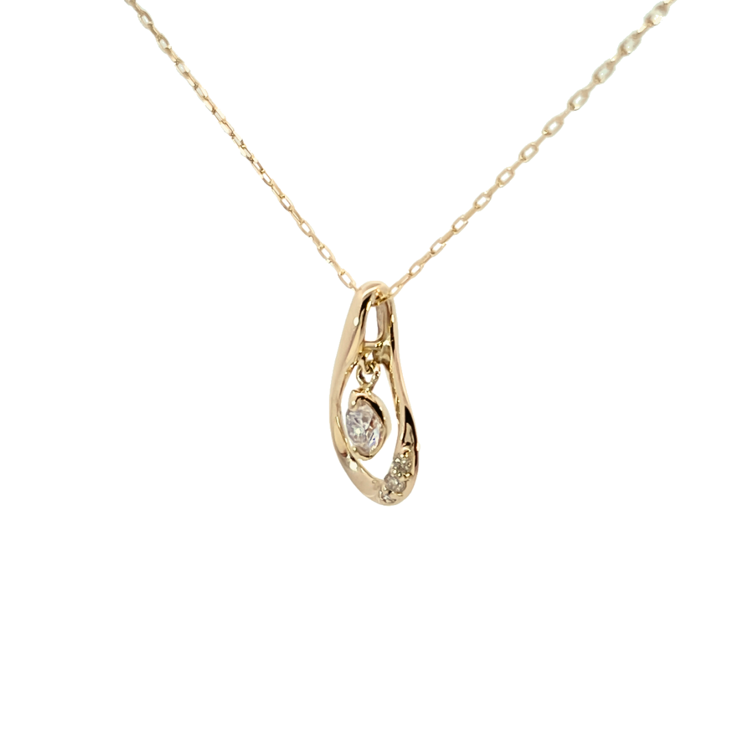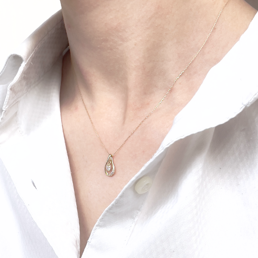 ドロップデザインの中に4月の誕生石ダイヤモンドがスィングする大人気のネックレスです。