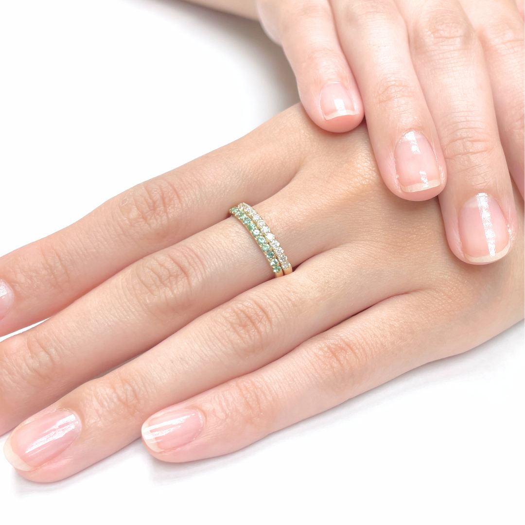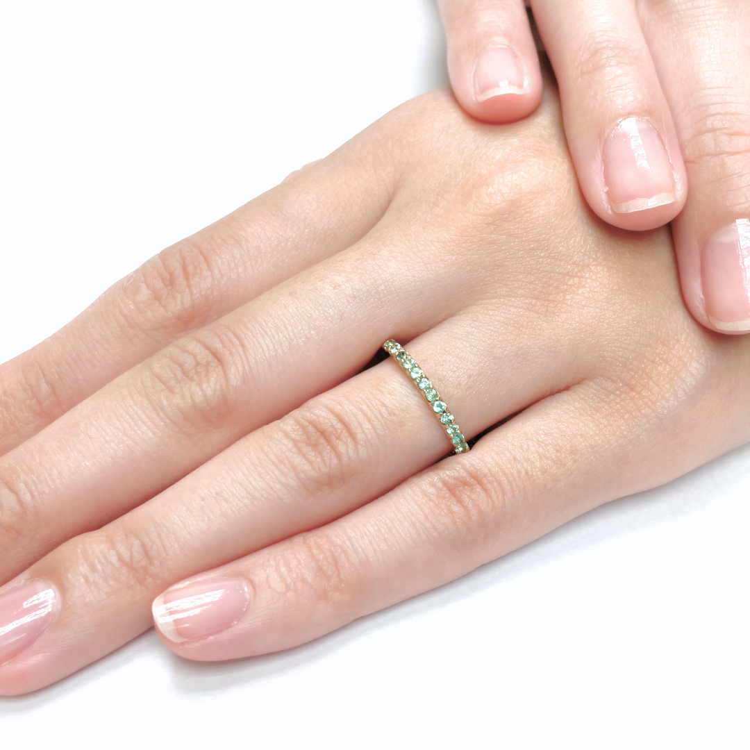 1粒1粒の5月の誕生石エメラルドを並べたエタニティは途切れることのない