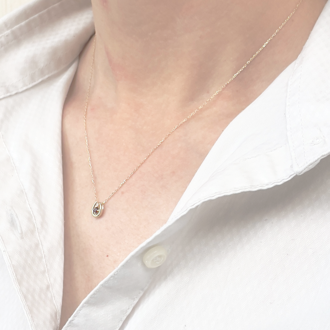 ガーネット×ダイヤモンド0.01ct ホースシューネックレス K10YG