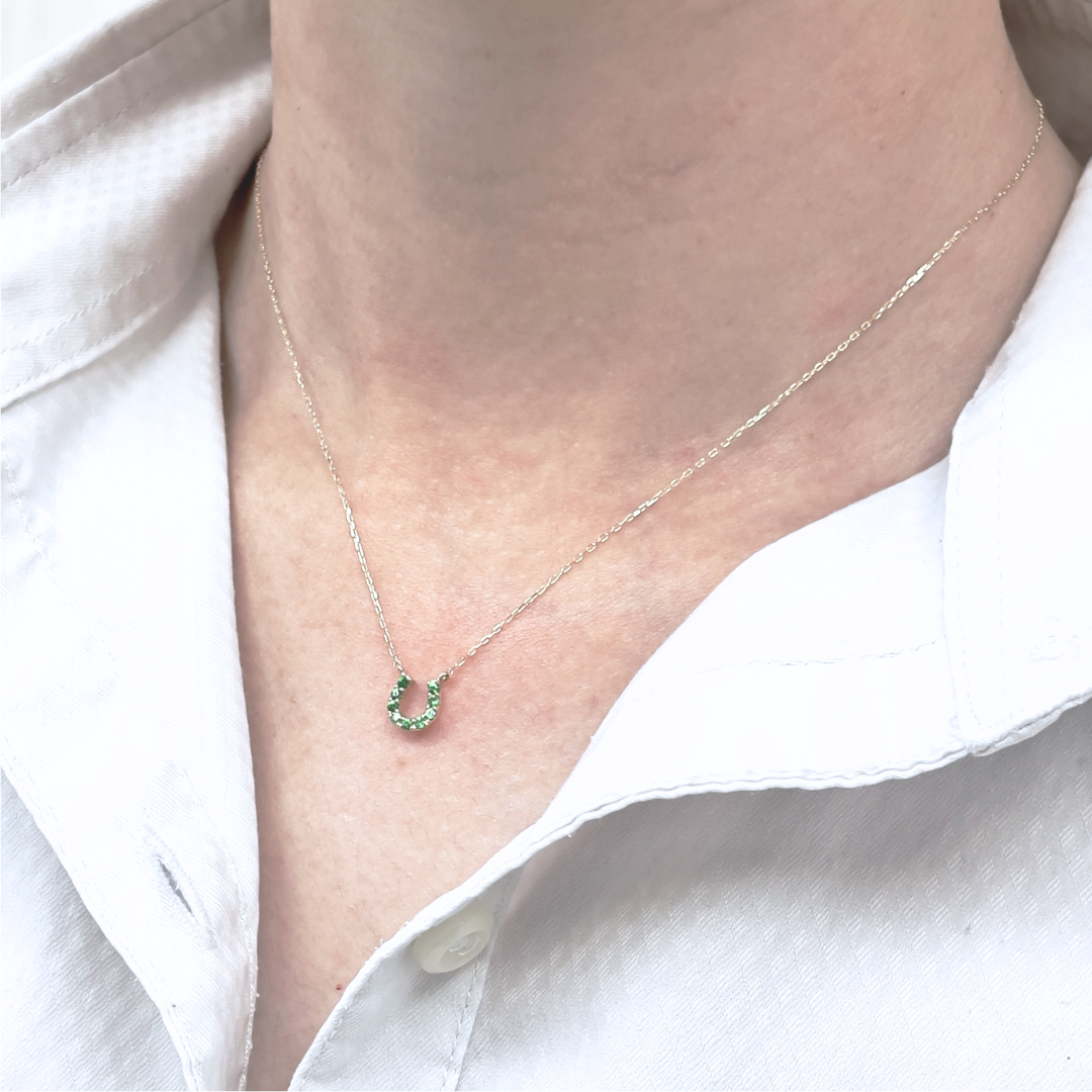 石留めしたラッキーモチーフのネックレスは毎日のお守りジュエリーとして