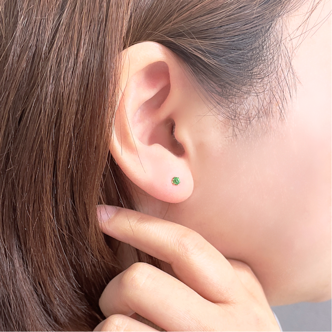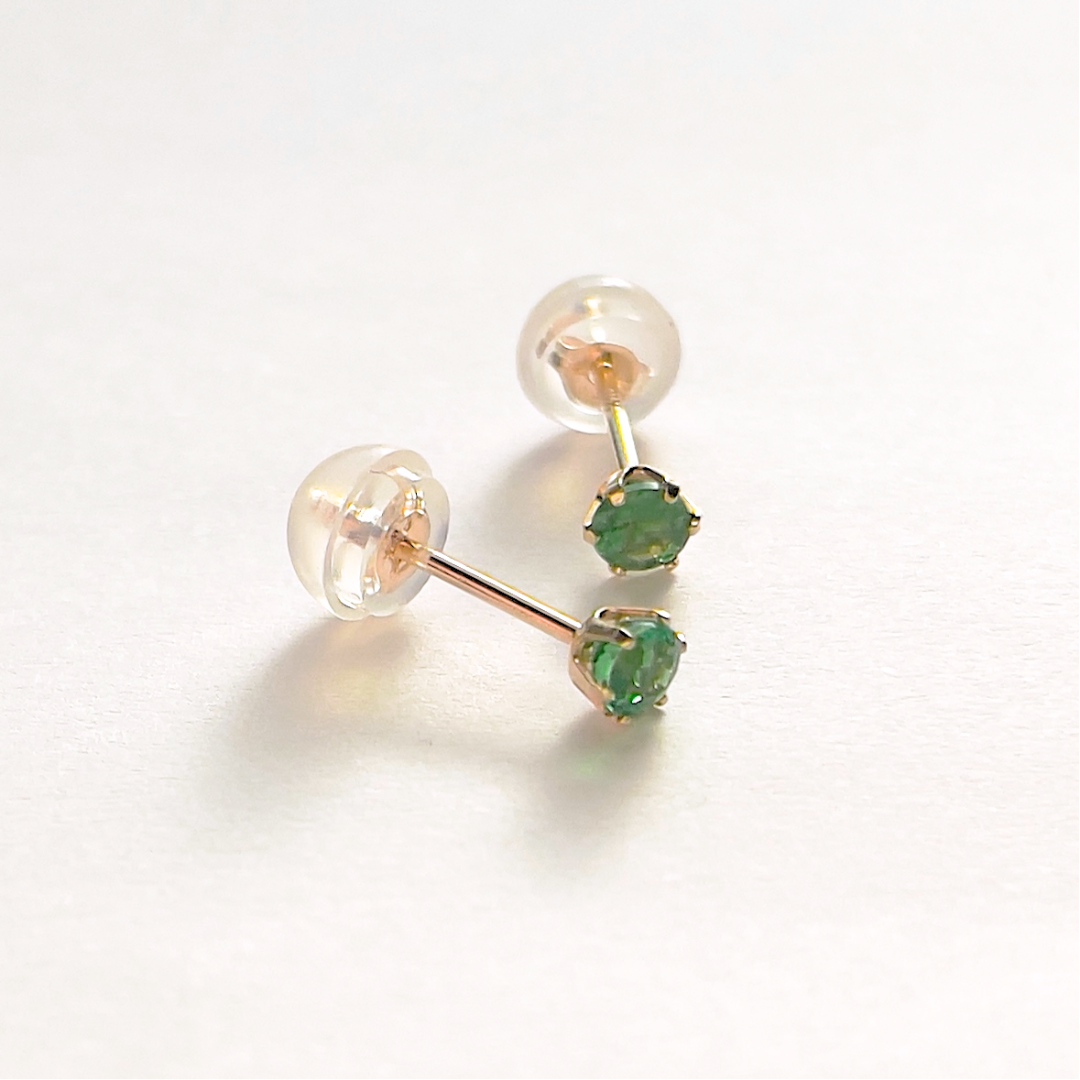 グリーンガーネット ラウンドカット スタッドピアス K10YG