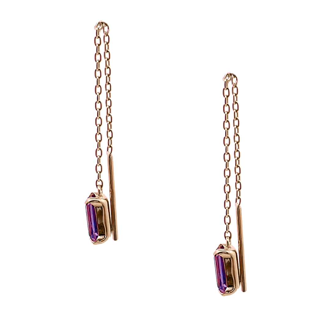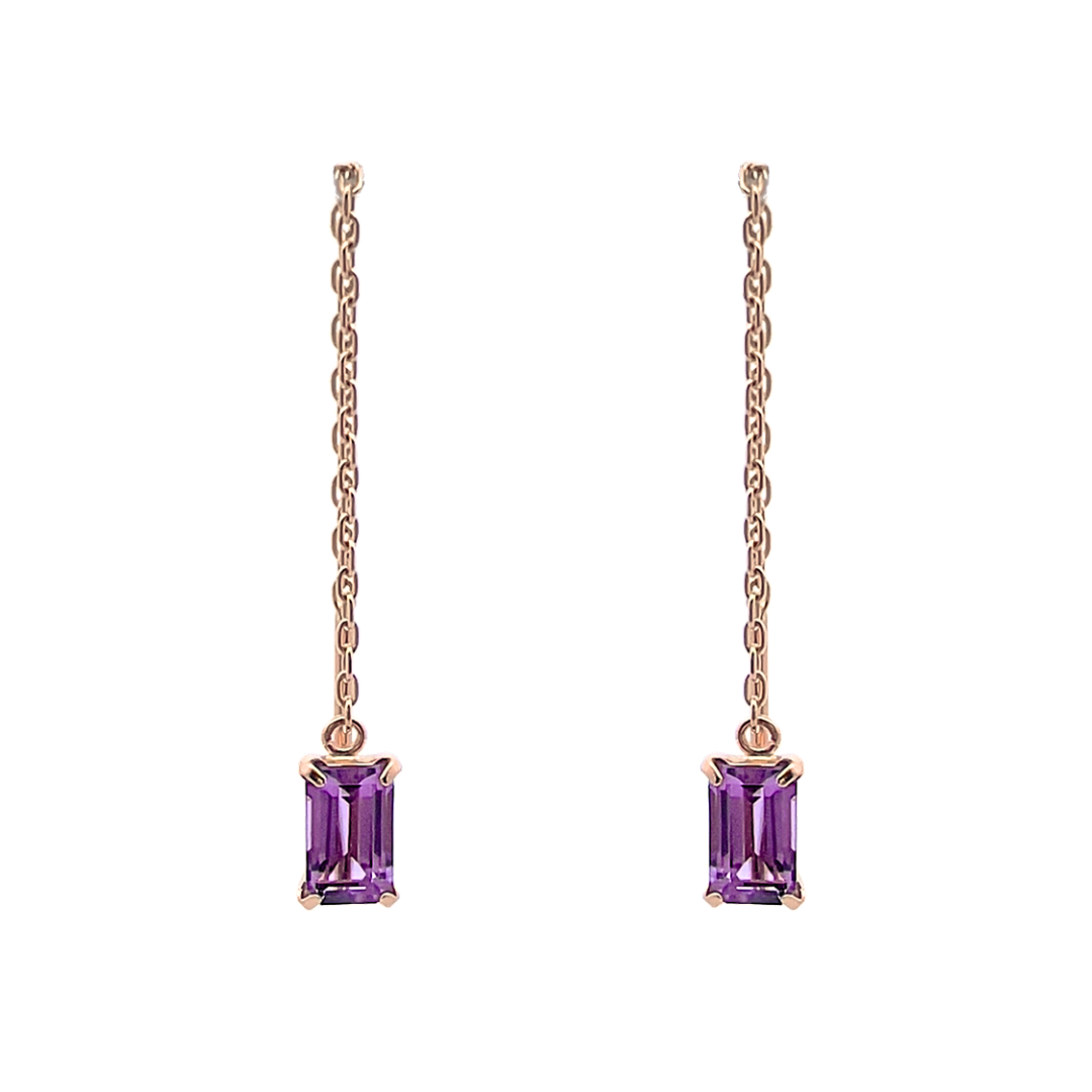 チェーンから零れ落ちるようなアメジストの色の華やぎを存分に楽しめるピアスです。