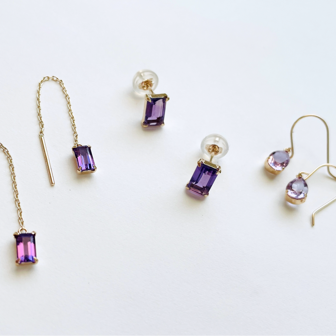 アメジストの魅惑のカラーが揺れる度に 表情に華やかさをプラスしてくれます。