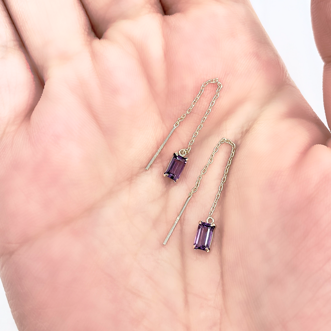 アメジスト スクエアカット スィングピアス K10YG