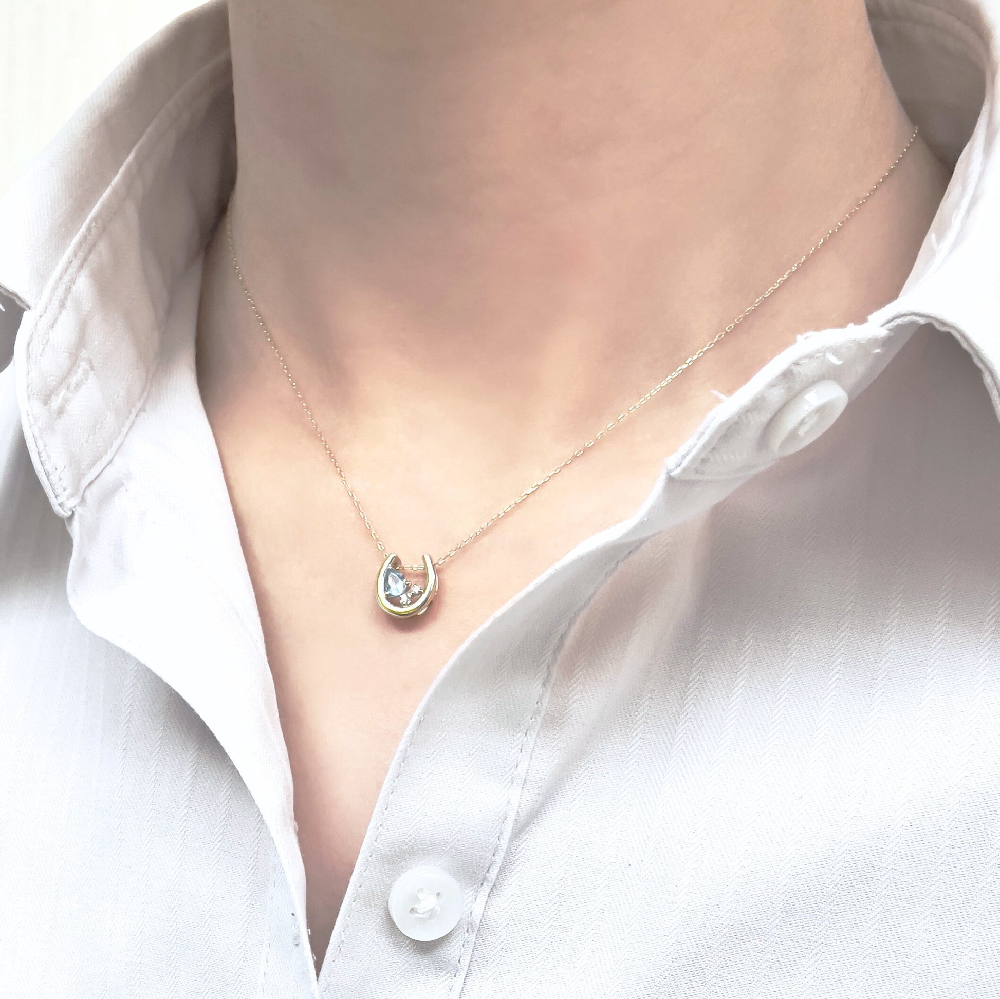 ブルートパーズ ホースシュー ネックレス K10YG