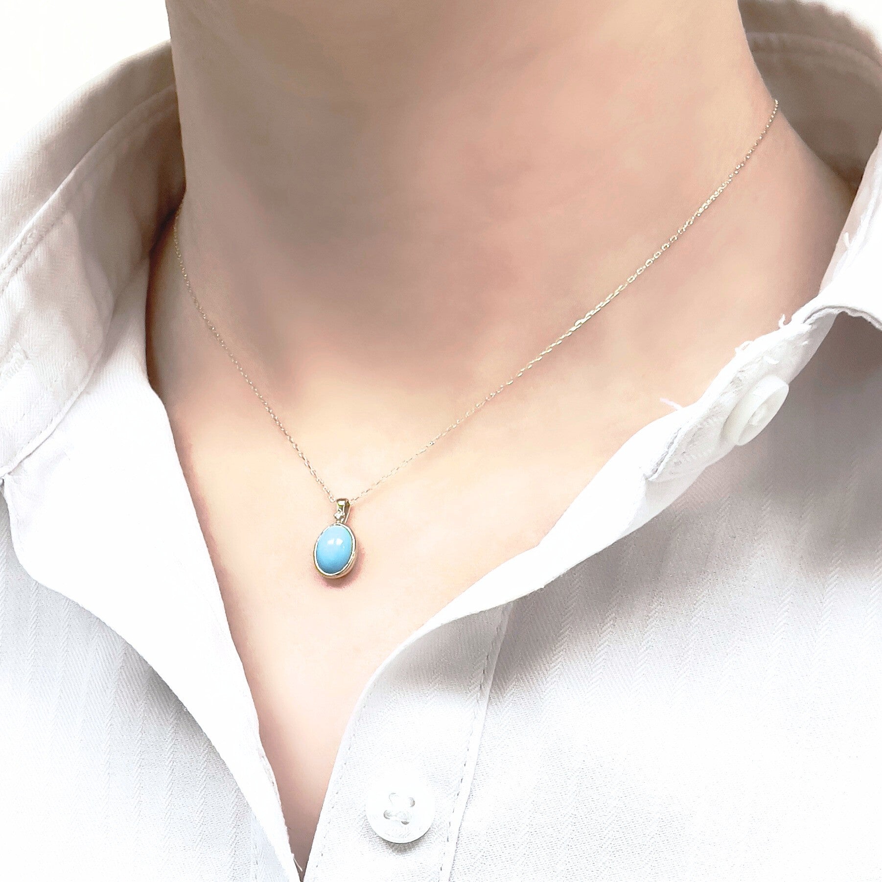 美しいターコイズブルーはアリゾナ産の良質な原石からカットした天然ターコイズならではの色合いです。