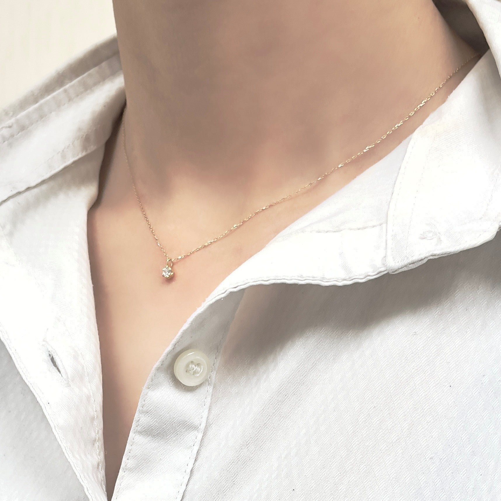 星屑のような輝きの0.1ctの1粒ダイヤモンドのネックレスです。