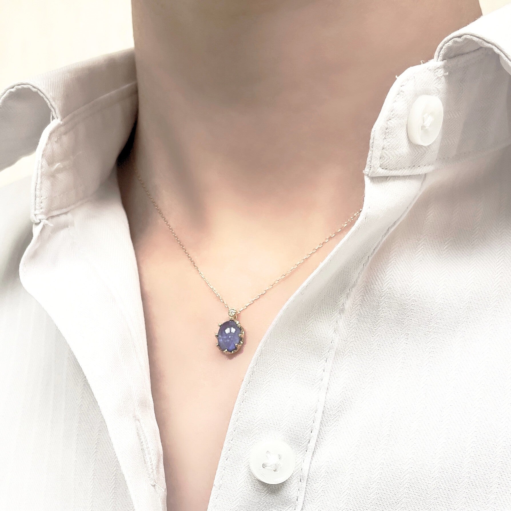 優しい印象のカボッションのタンザナイトはデイリーに身に着けて楽しめるデザインです。