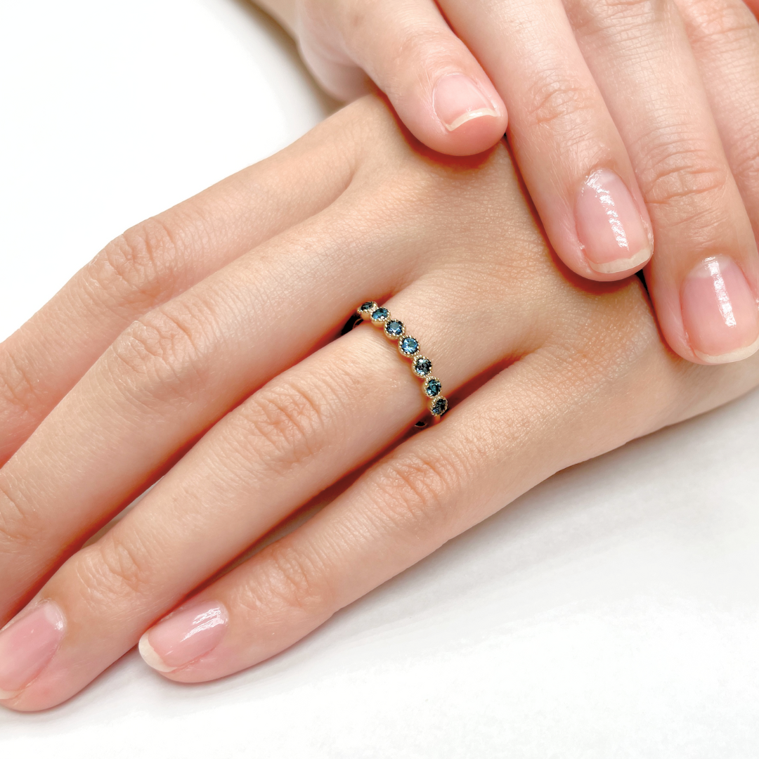 ロンドンブルートパーズ ミル打ちハーフエタニティ リング K10YG