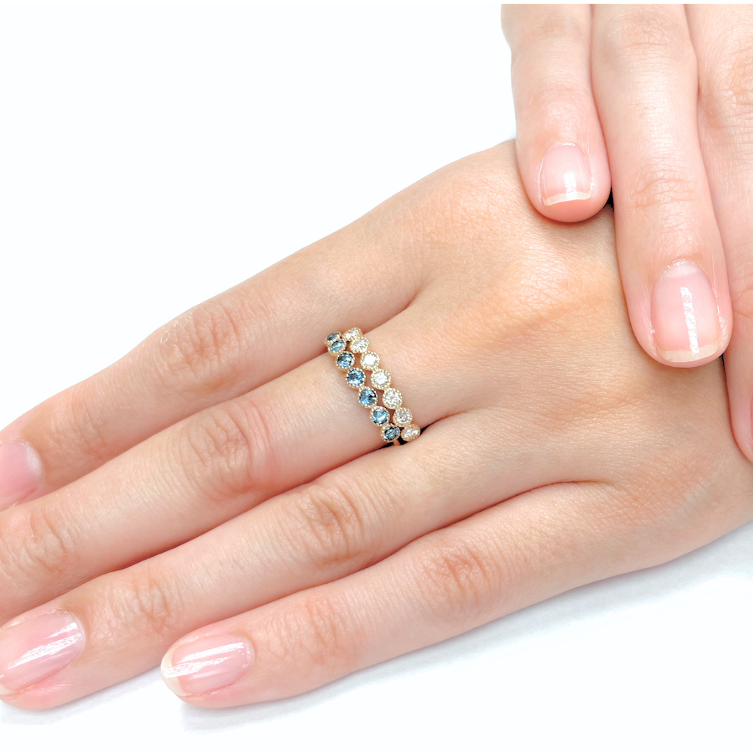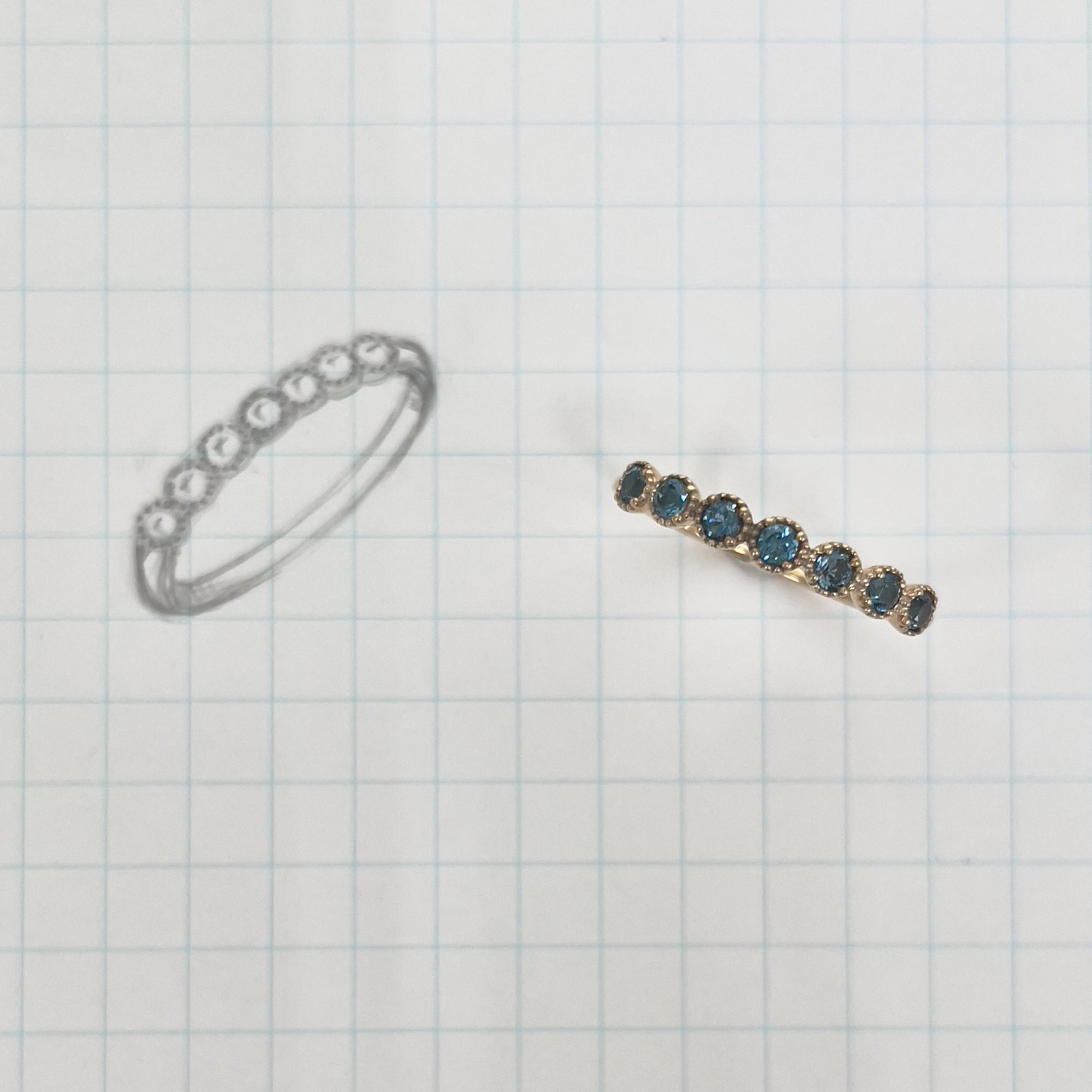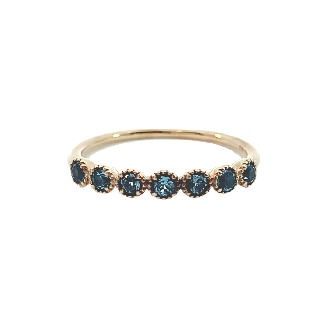 アンティークの一文字リングは11月の誕生石ロンドンブルートパーズを1粒1粒、