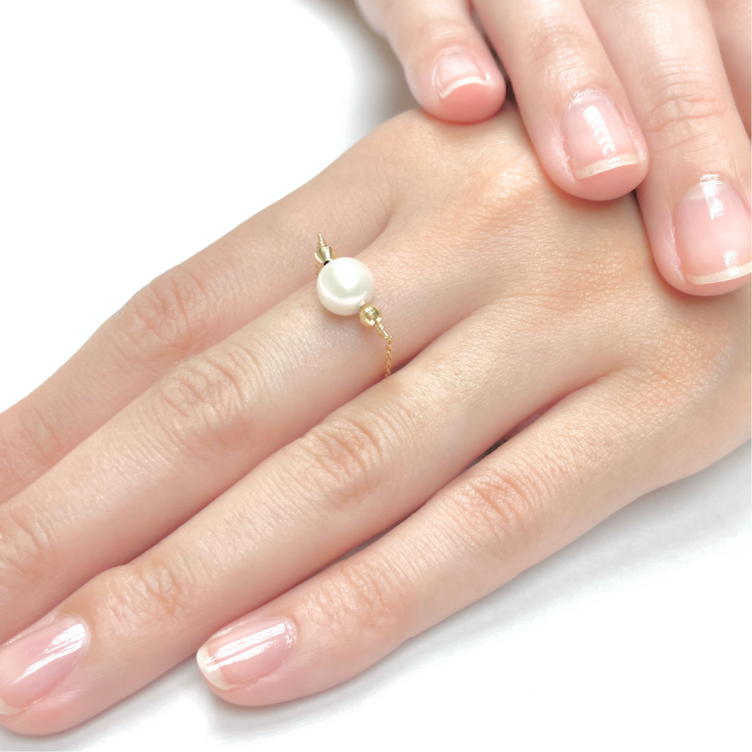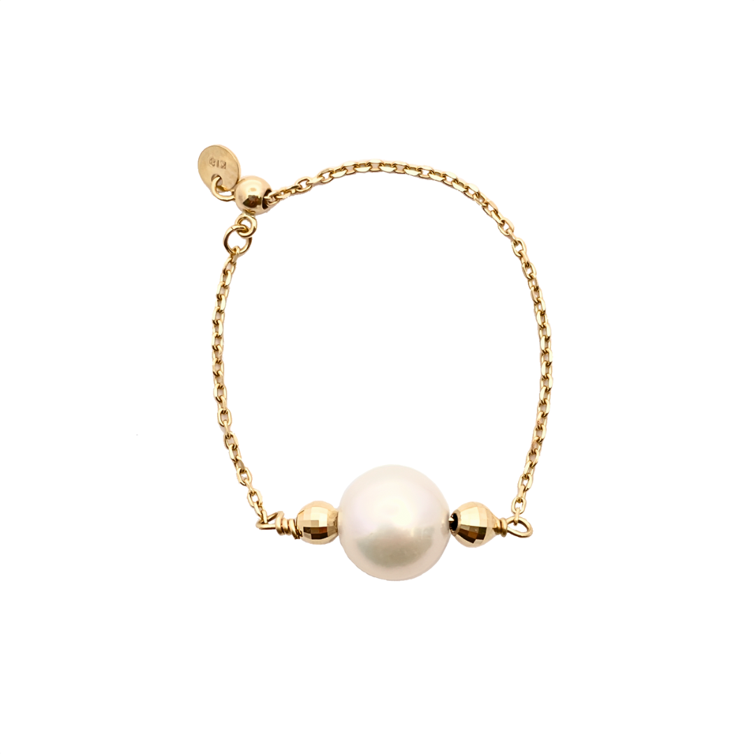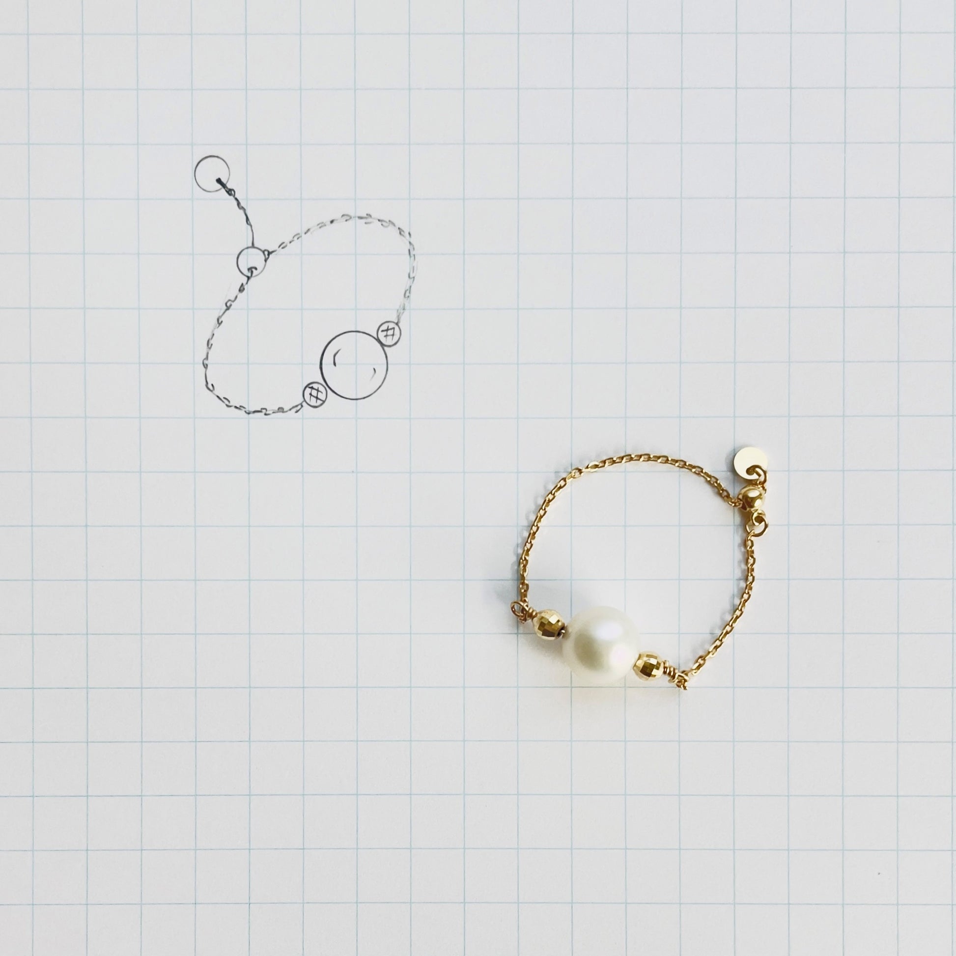存在感のある6月の誕生石アコヤ真珠とキラキラしたミラーボールの上品なデザインをチェーンリングでお作りしました。