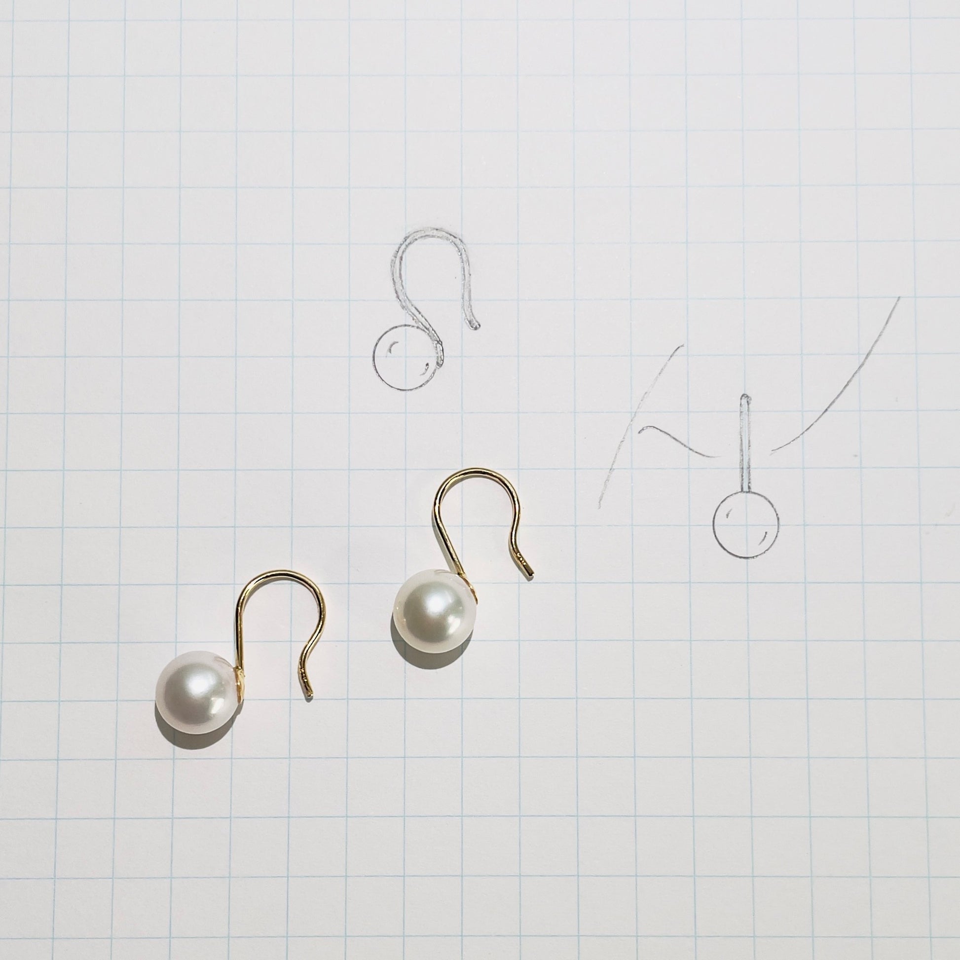 パールは個体差があるのでそれぞれにあわせてパールに寄り添うようにラインを手加工しているので耳元にフィットして着用できるカジュアルなピアスです