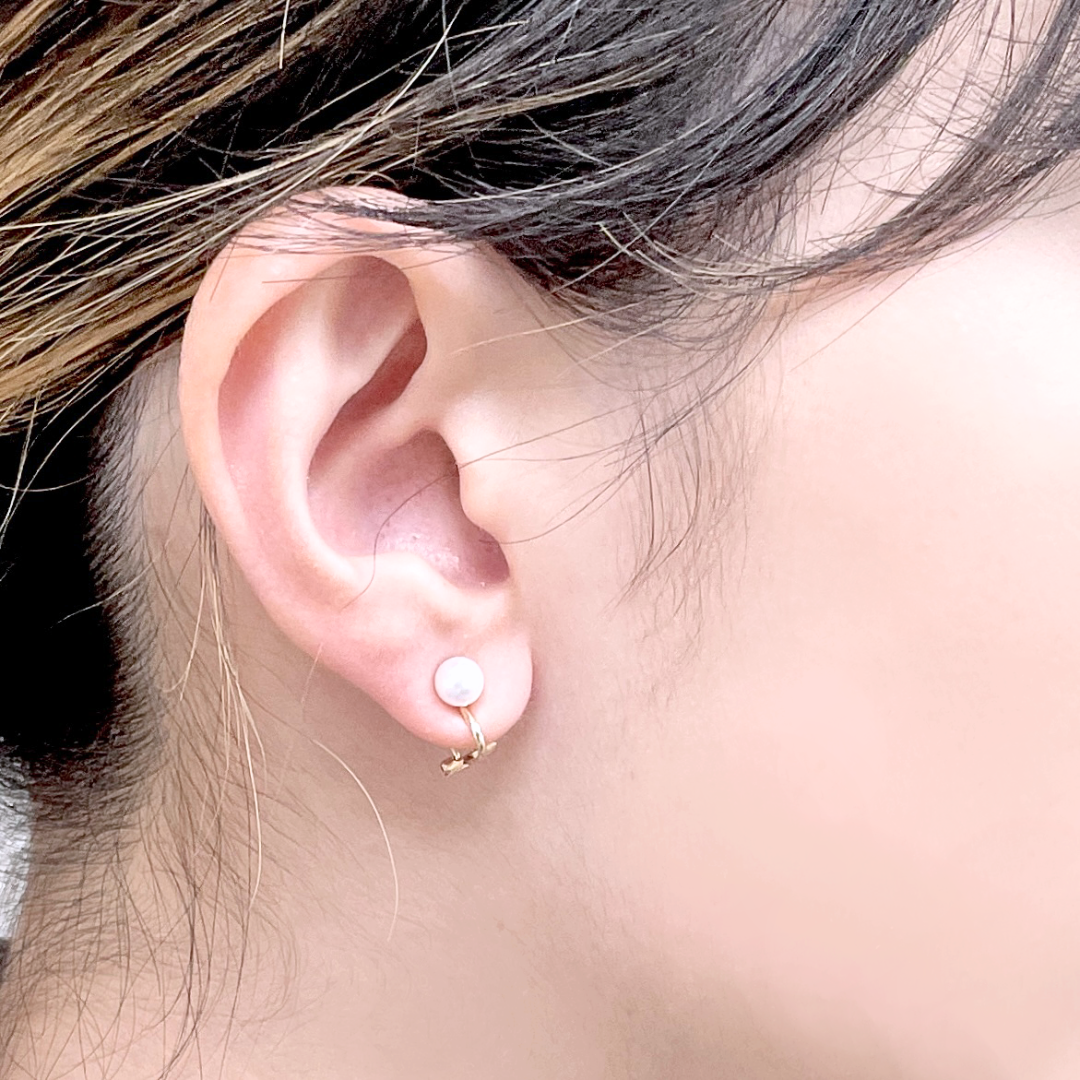 従来のイヤリング金具は着用しにくかったり、長く着けていると耳や頭が痛くなったりしやすいという声から、それらを解消する金具を自社で製作しました。