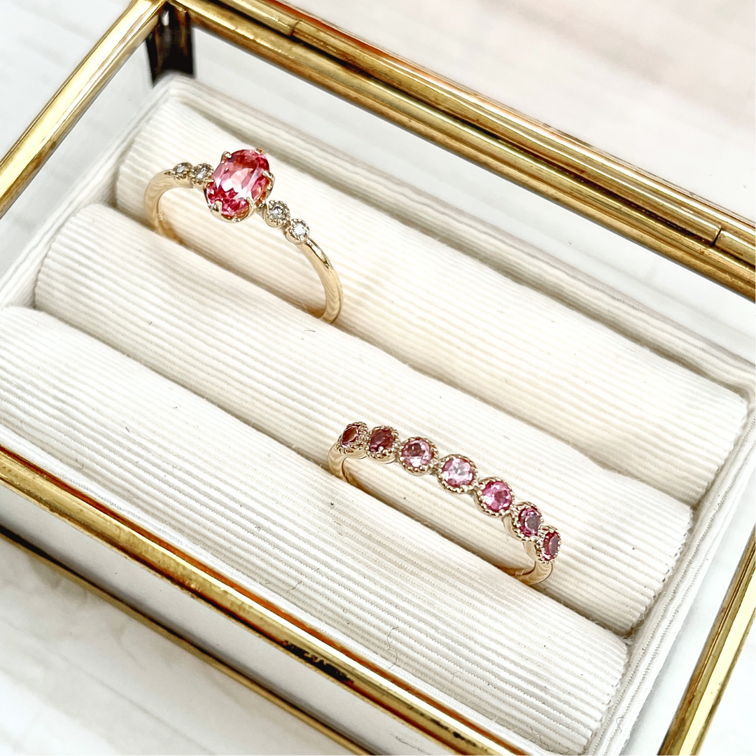 アンティークの一文字リングは10月の誕生石ピンクトルマリンを
