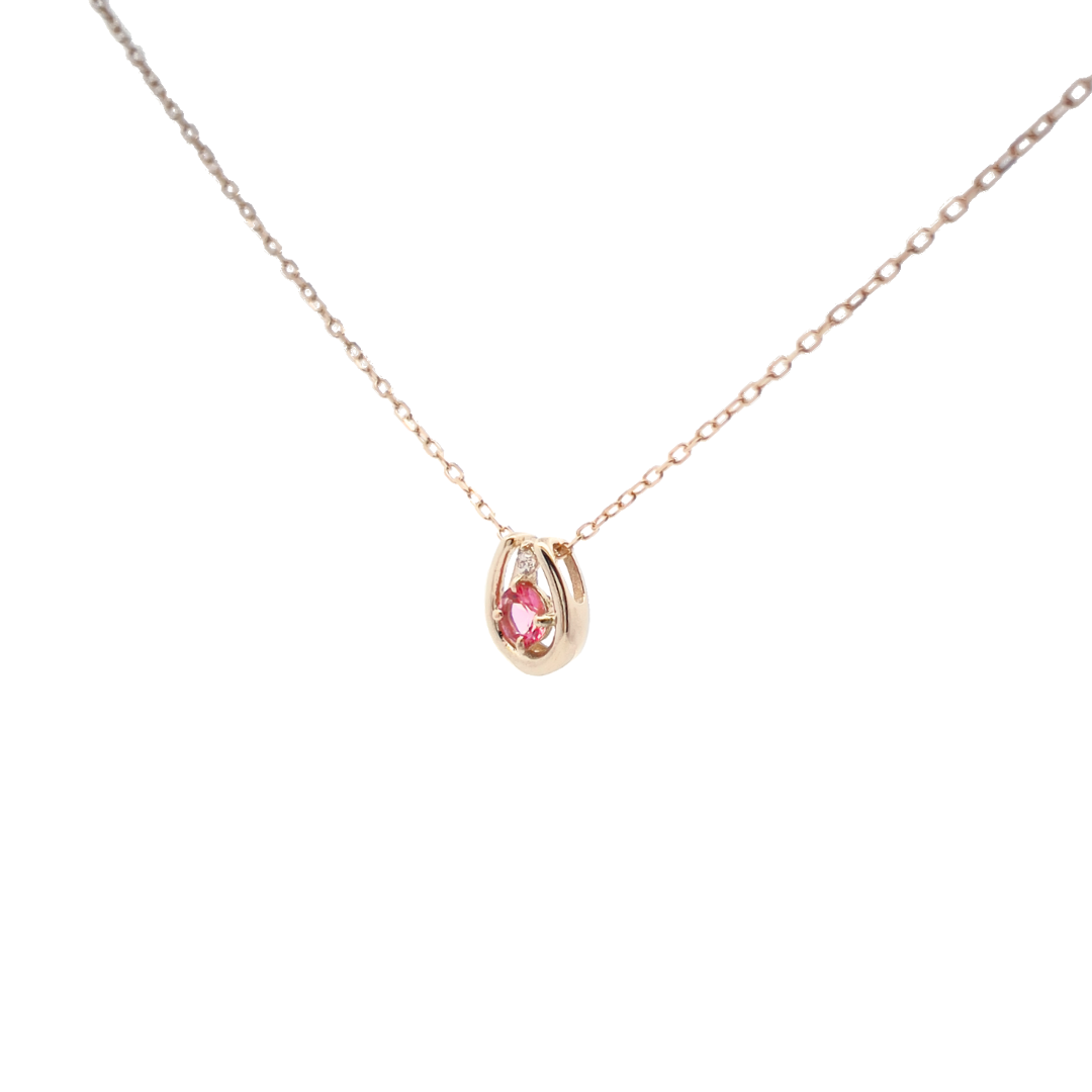 ピンクトルマリン×ダイヤモンド0.01ct ホースシューネックレス K10YG