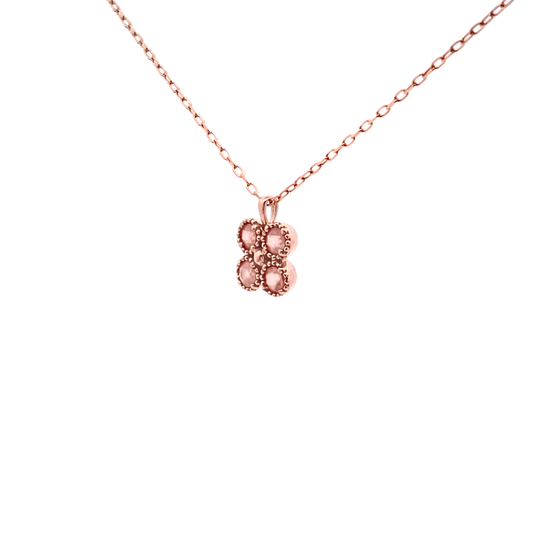 優しいローズピンクにピンクゴールドのミルラインで大人可愛いデザインに仕立てています。