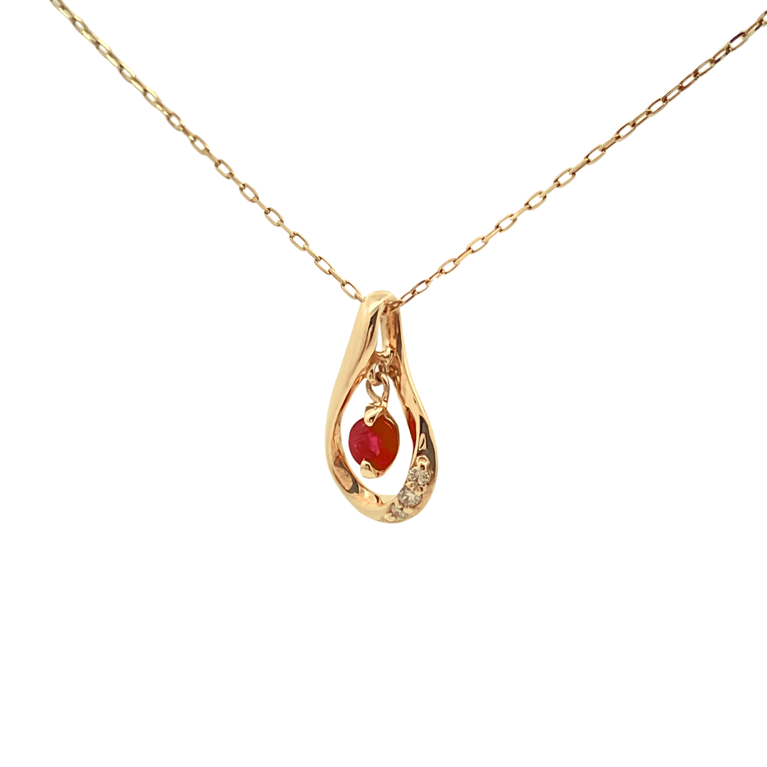 ルビー×ダイヤモンド ドロップネックレス K10YG