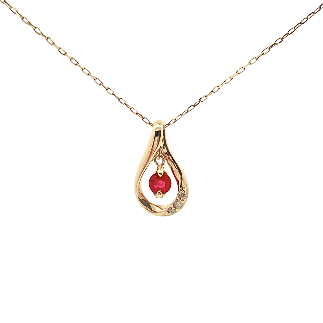 ドロップデザインの中に7月の誕生石ルビーがスィングする大人気のネックレスです。