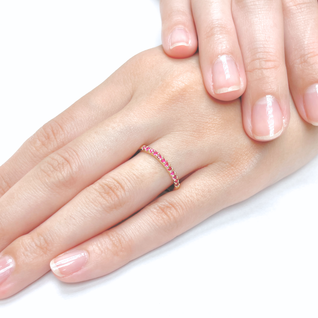 1粒1粒の7月の誕生石ルビーを並べたエタニティは途切れることのない