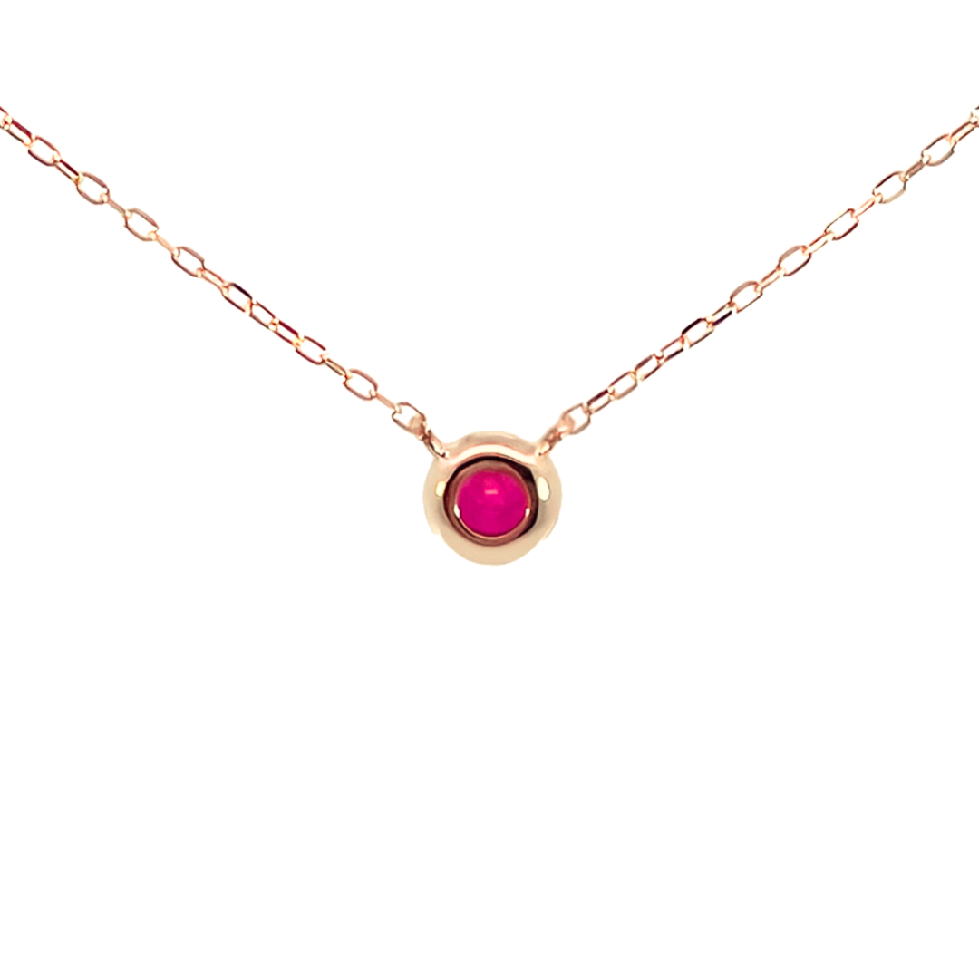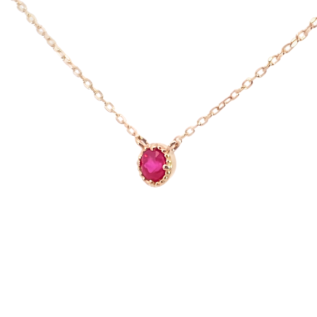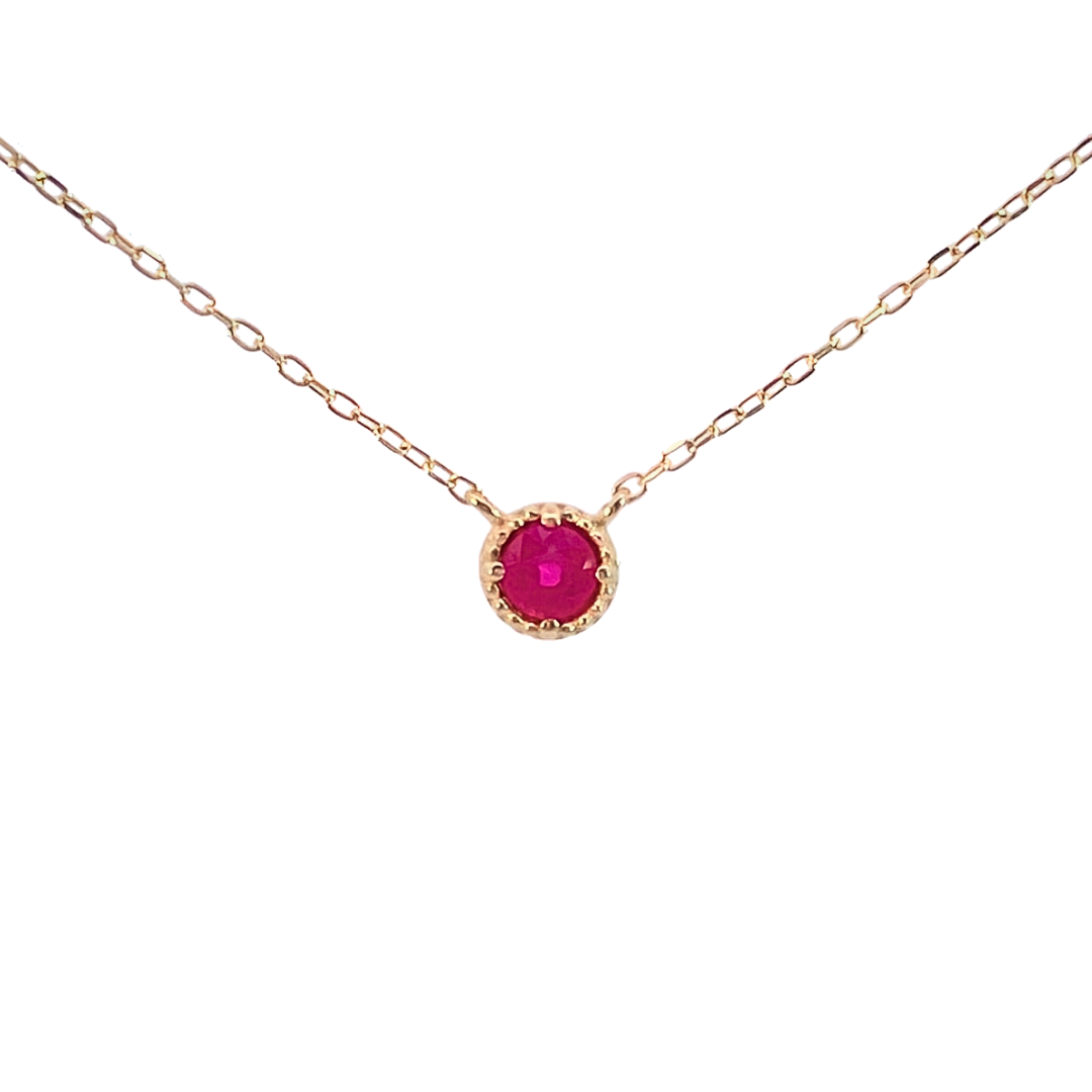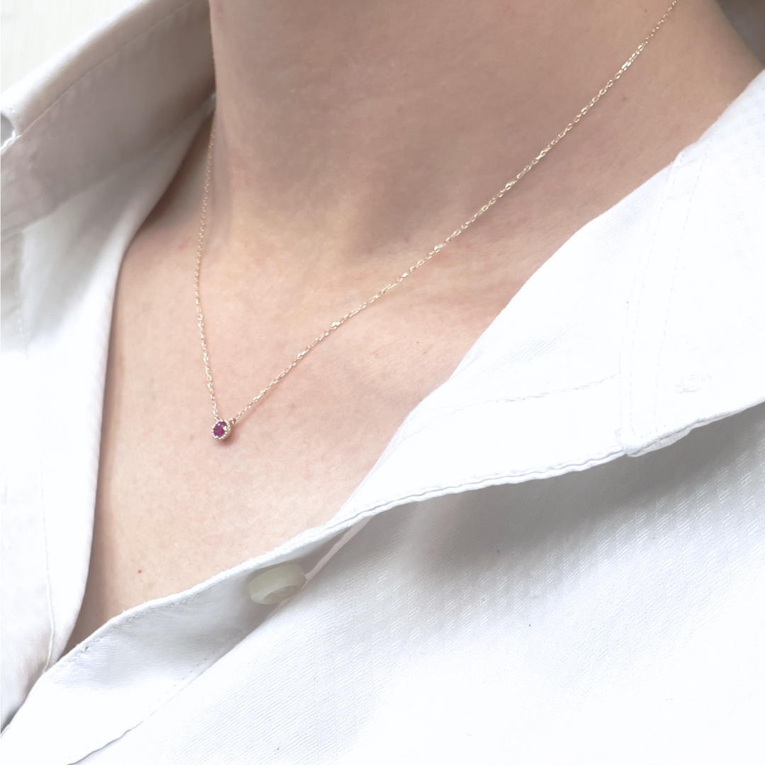 シンプルデザインの決定版 7月の誕生石ルビーの1粒石ネックレスです。