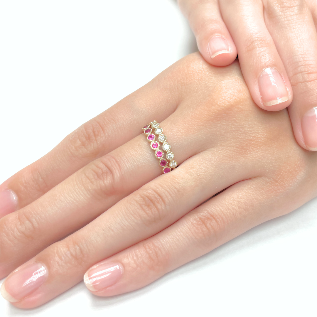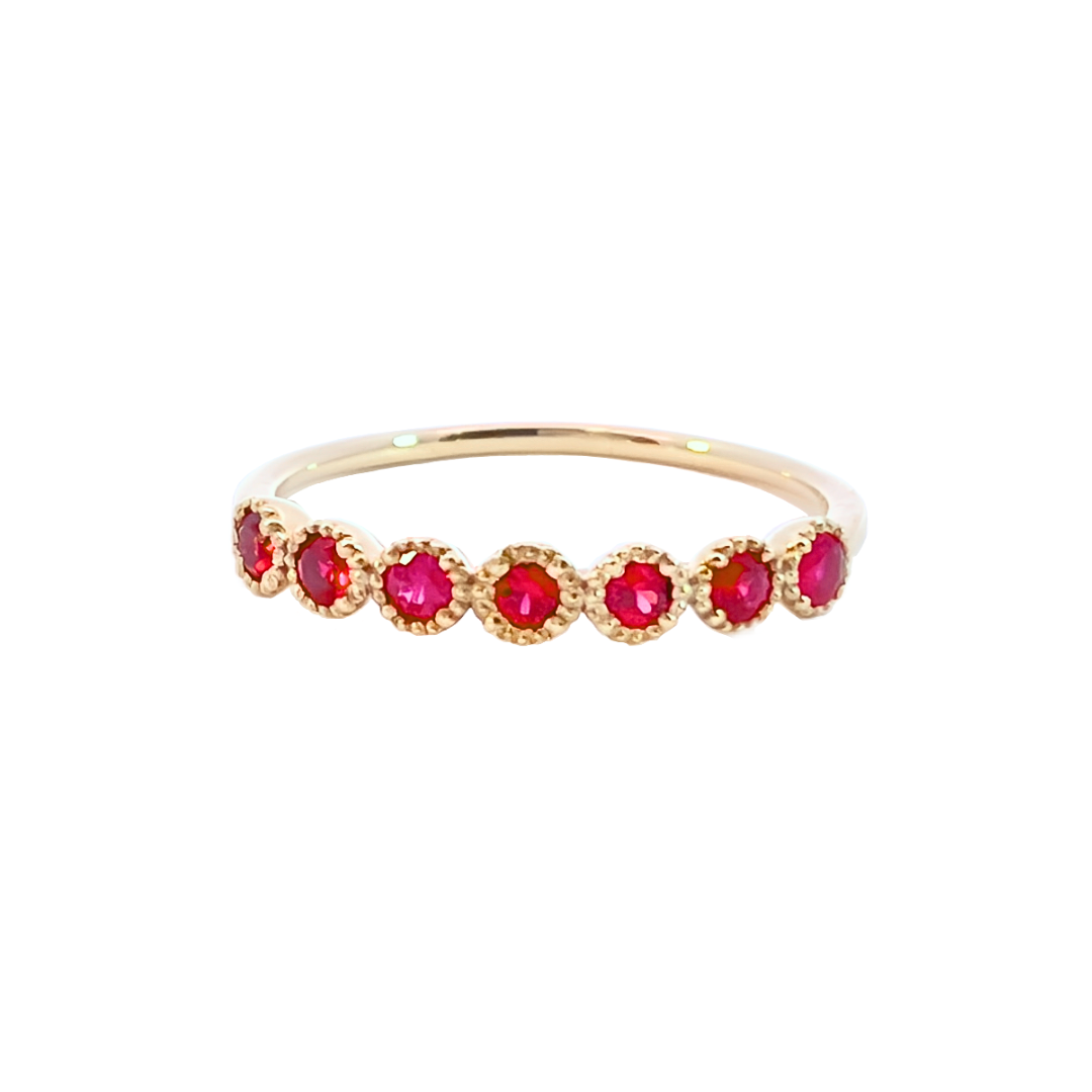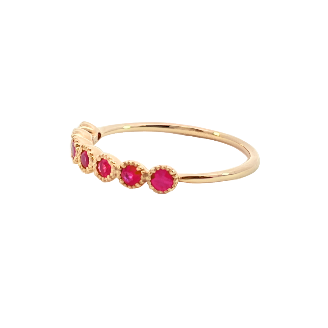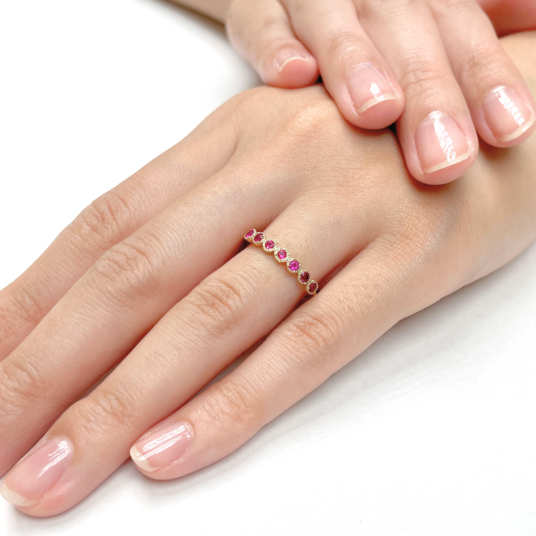 ルビー ミル打ちハーフエタニティ リング K10YG
