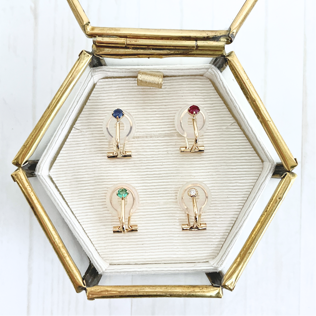 9月のバースデーストーンのサファイアのシンプルなイヤリングは