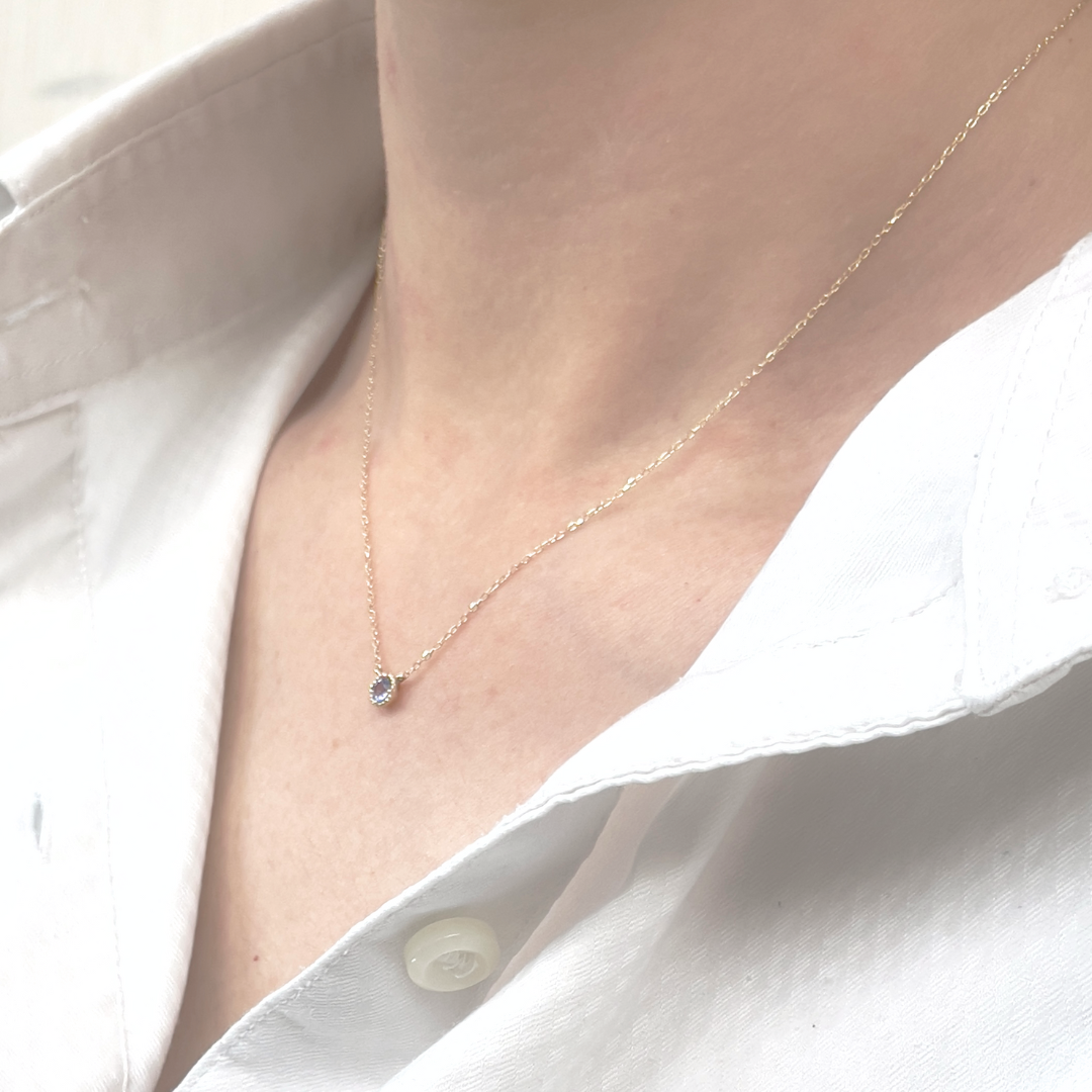 シンプルデザインの決定版 12月の誕生石タンザナイトの1粒石ネックレスです。