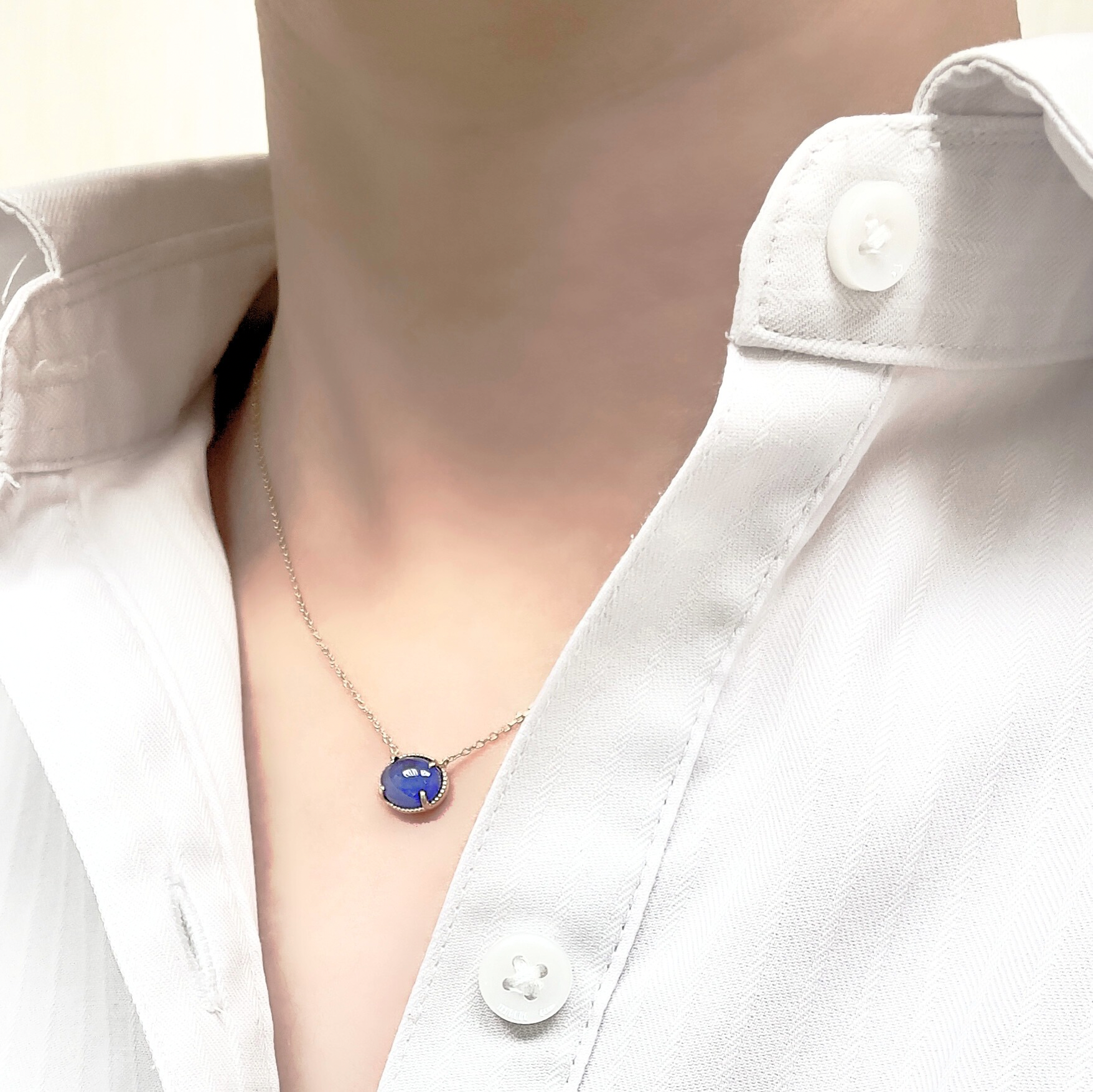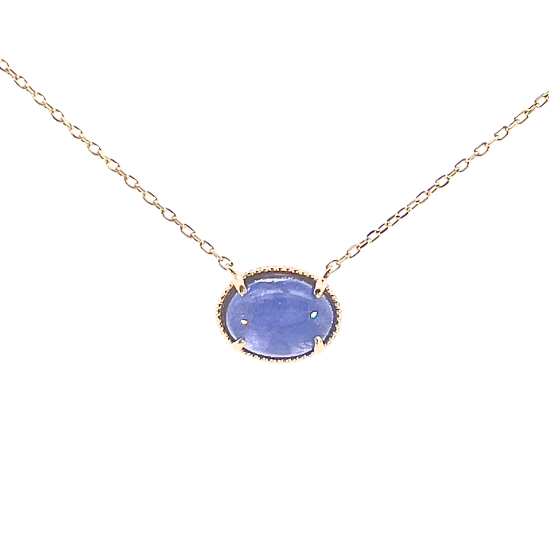 ブルー・パープル・クリアの3色性を持つタンザナイトはカボッションにすることで、より一層複雑な色をあらわします。