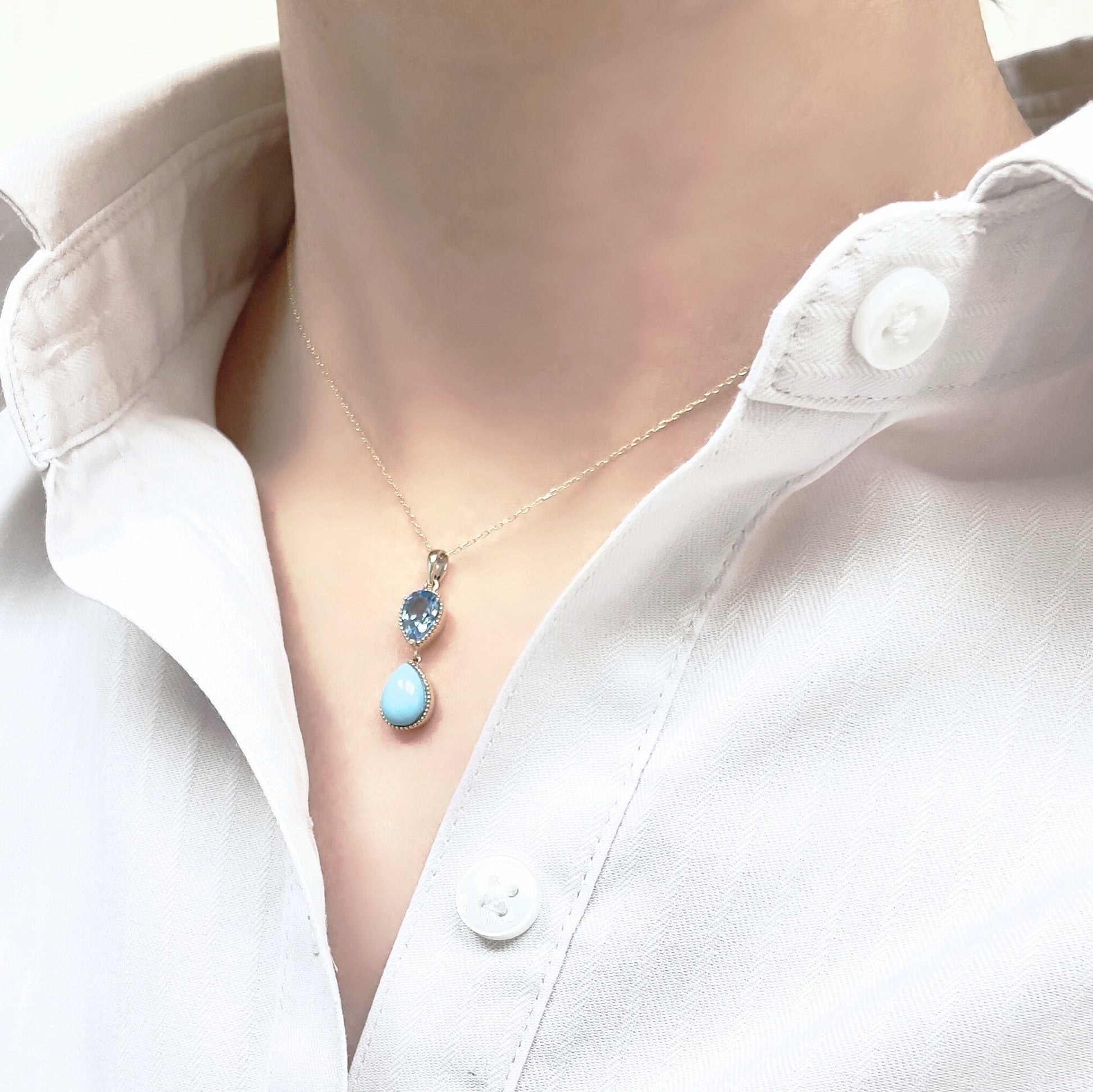 ブルートパーズ×ターコイズ ネックレス K10YG