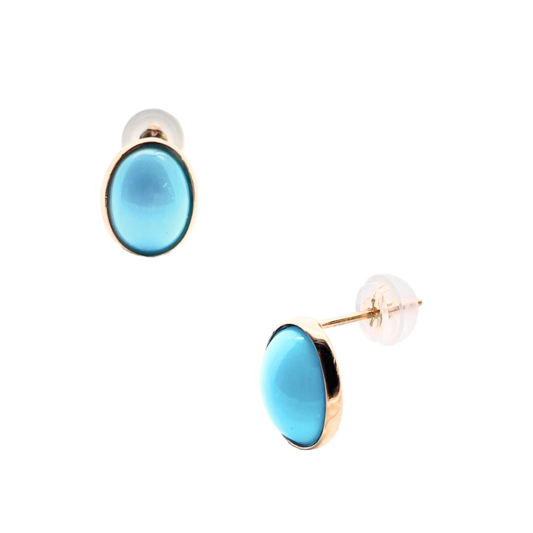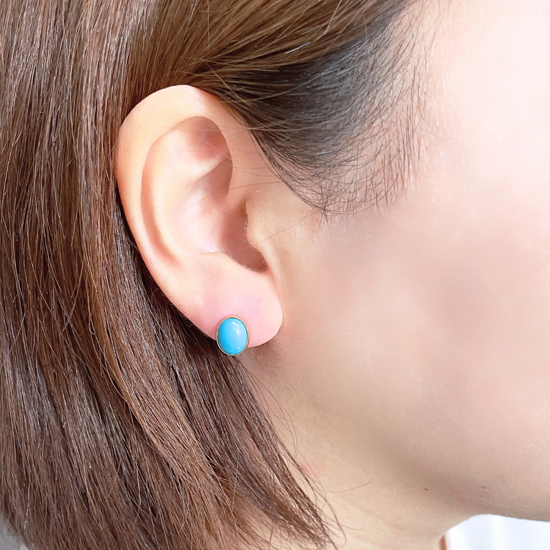 ターコイズ オーバルカボッション スタッドピアス K10YG